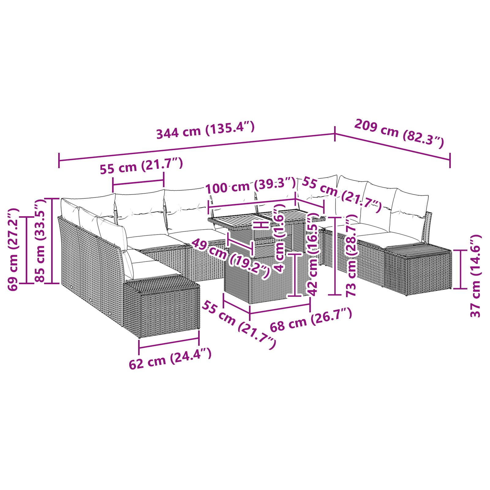 Havesofa Sæt Med Pude 11 Dele Beige Og Grå 100 X 55 X 73 Cm