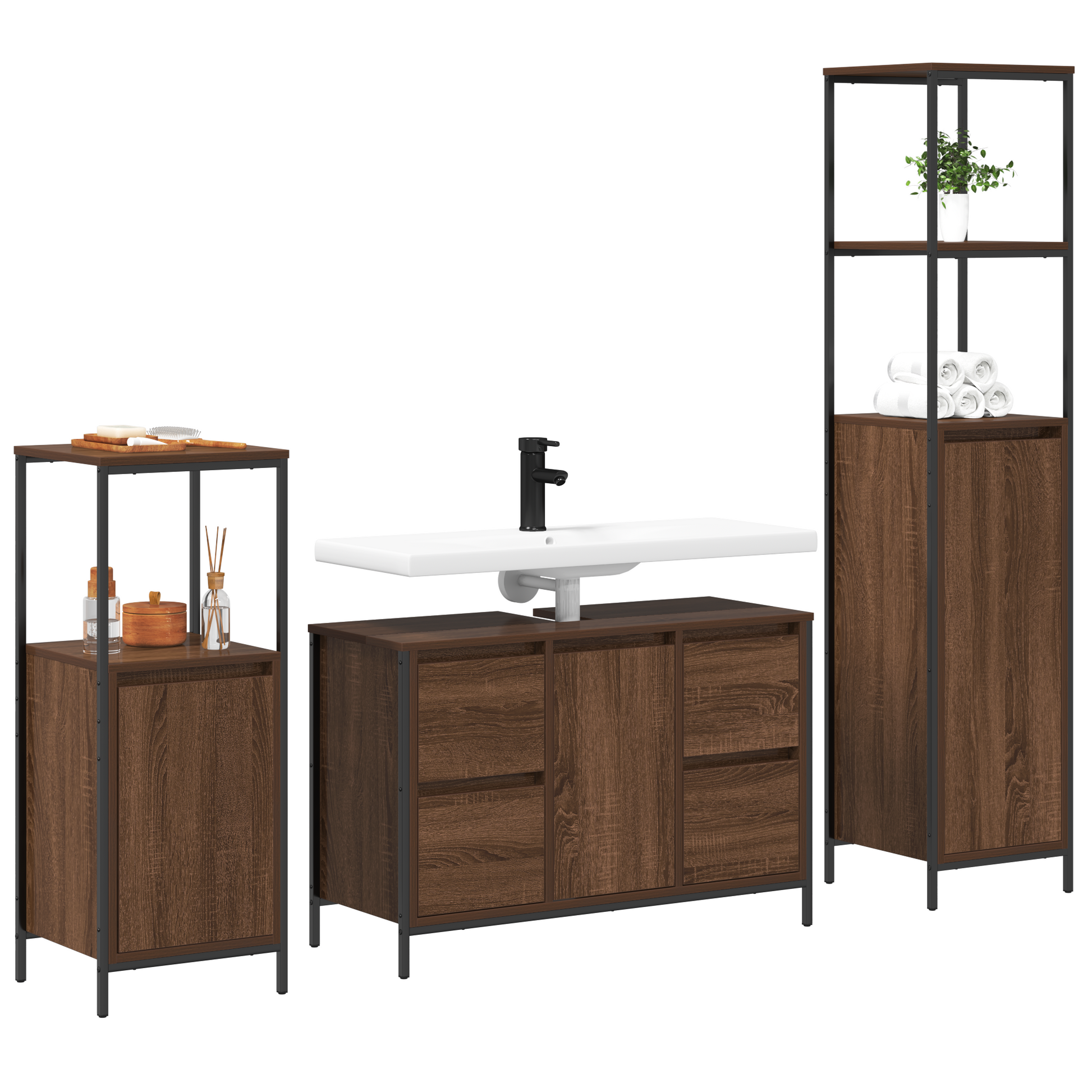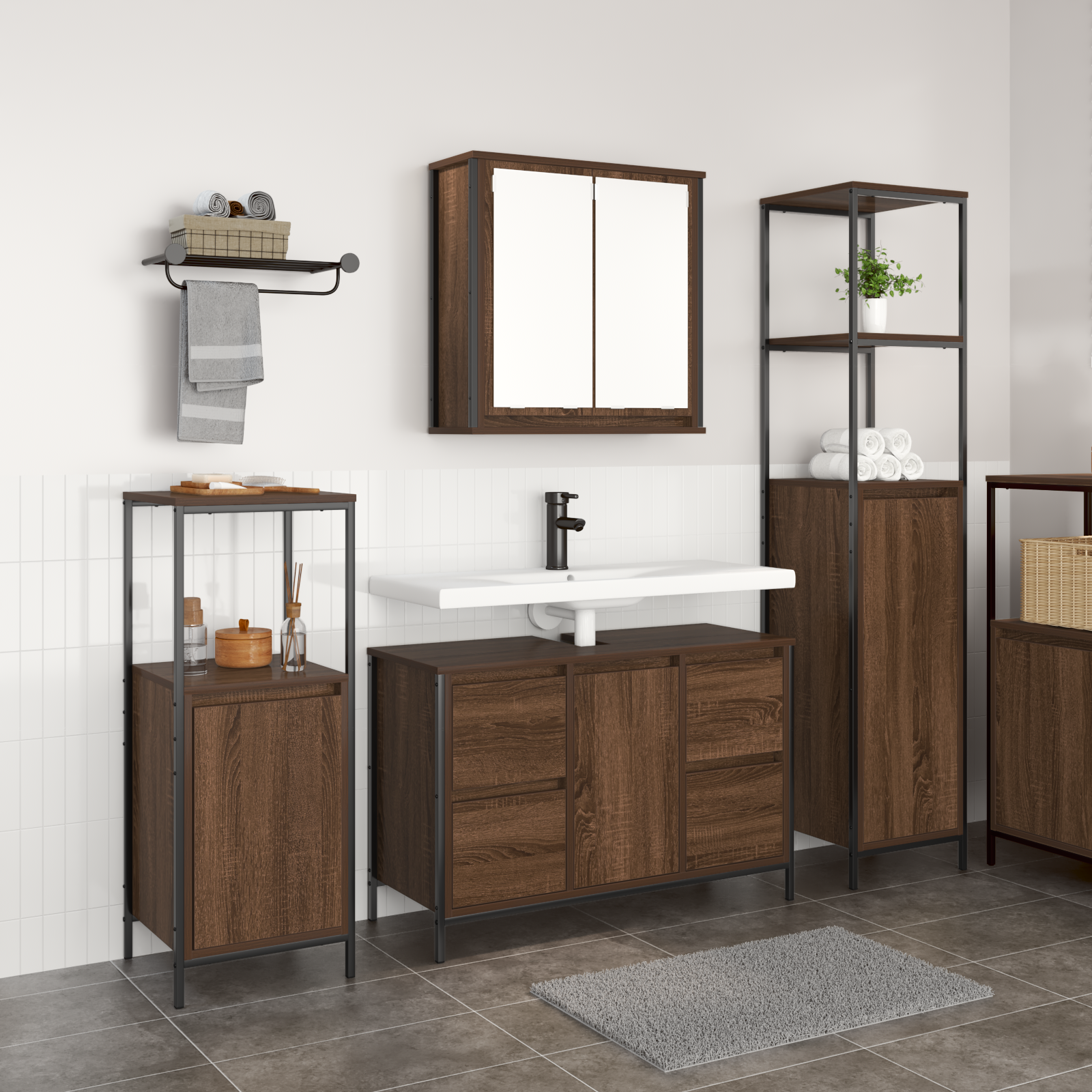 Badeværelsesmøbel Sæt 3 Dele Brun Eg Og Sort 36 X 35 X 165 Cm