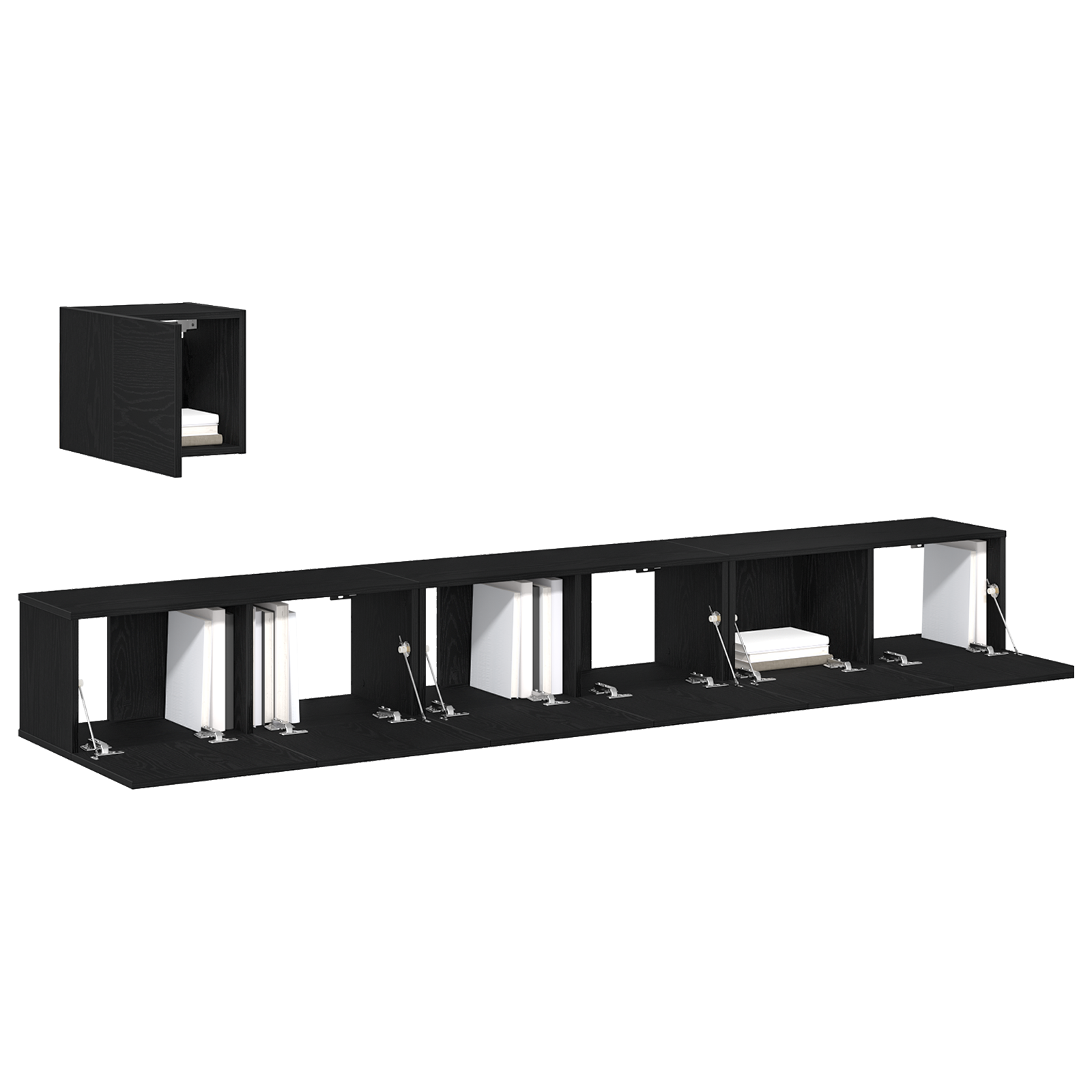 Tv-Møbelsæt 4 Dele Sort Eg 80 X 30 X 30 Cm Konstrueret Træ