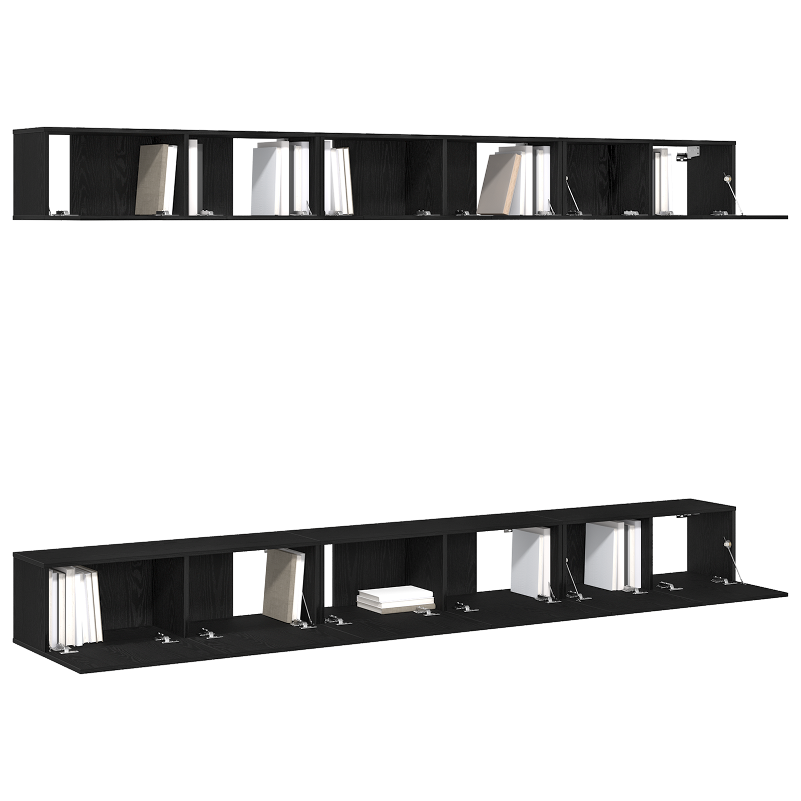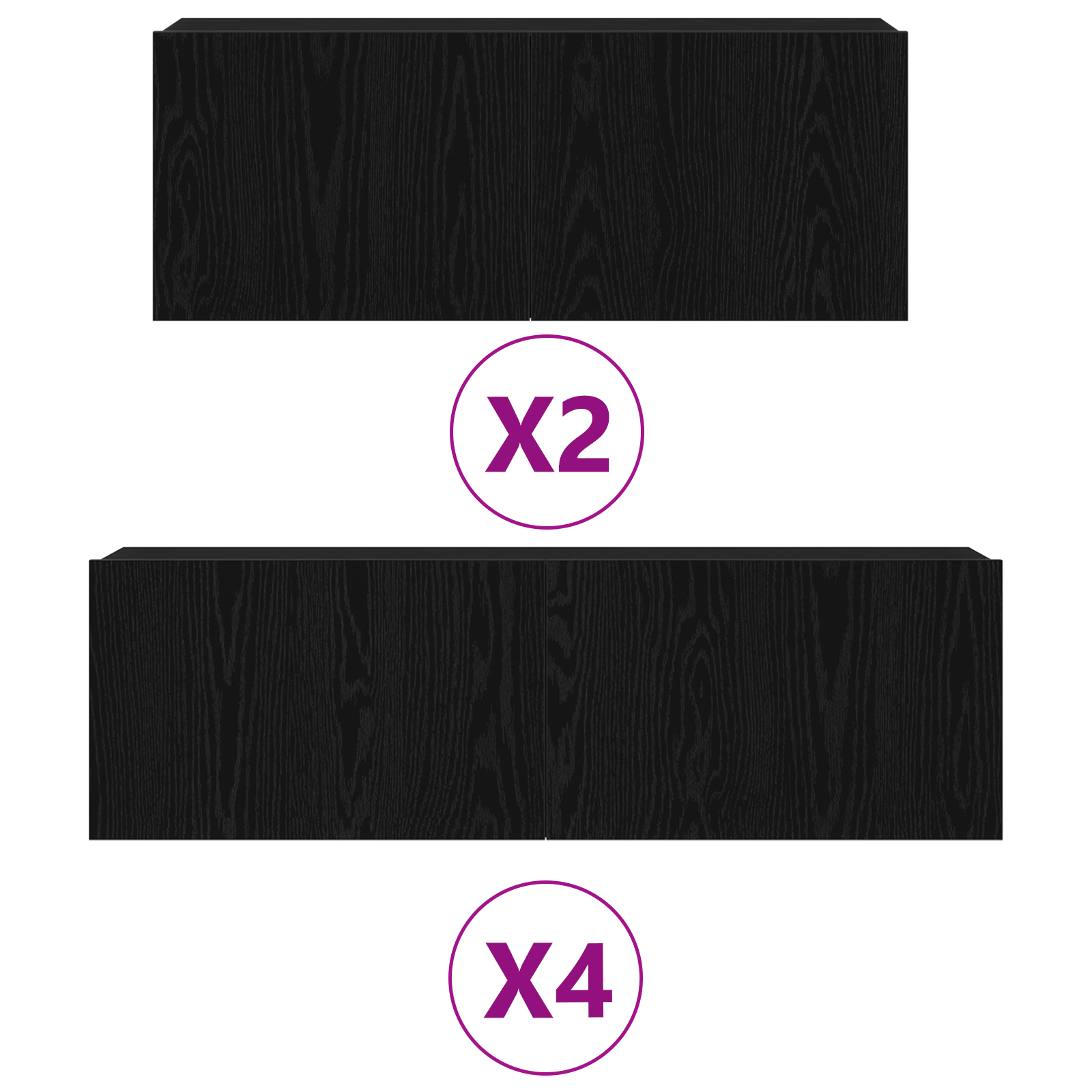 Tv-Møbelsæt 6 Dele Sort Eg 100 X 30 X 30 Cm Konstrueret Træ