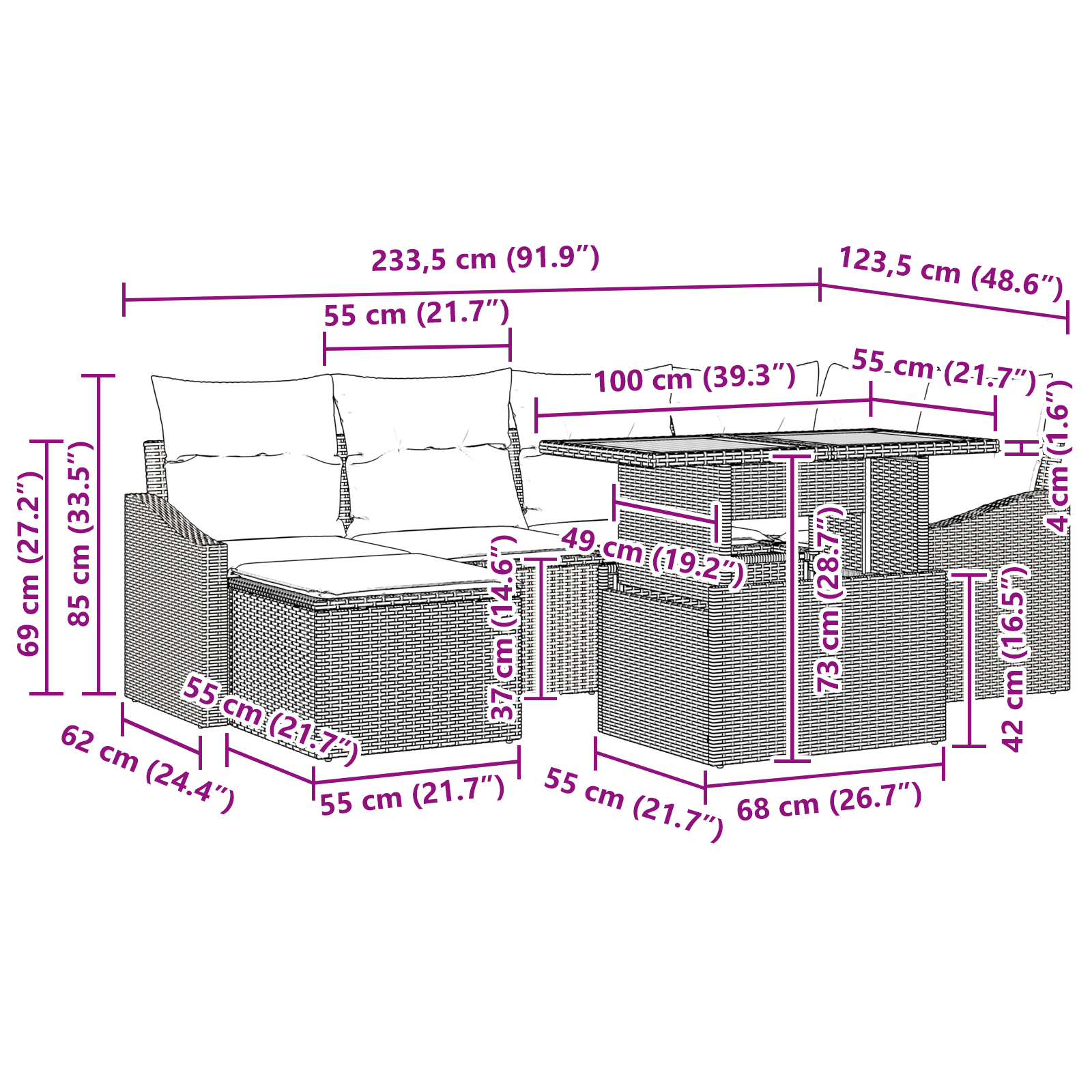 Hvert element i dette havemøbelsæt er designet med smart opbevaringsfunktion, som hjælper med at holde dit udendørsområde ryddeligt og organiseret. De komfortable, boksede puder giver optimal støtte og komfort, hvilket gør lange middage og hyggelige aftener endnu mere behagelige.