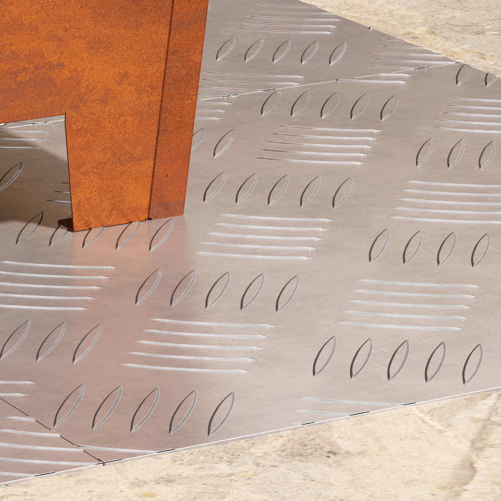 - Materiale: Metalstål med ribbet aluminium checker plate overflade