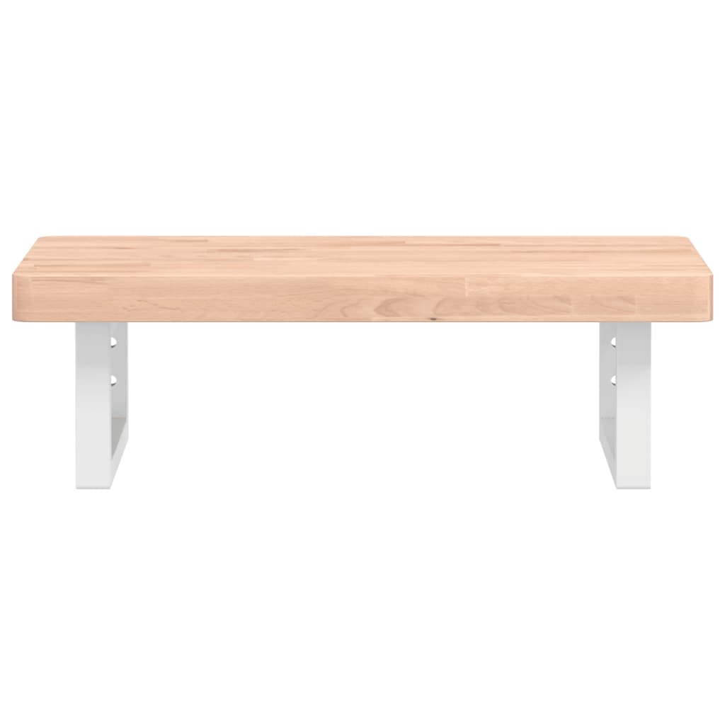 Badeværelseshylde Stål Og Massivt Bøgetræ Brun Og Hvid