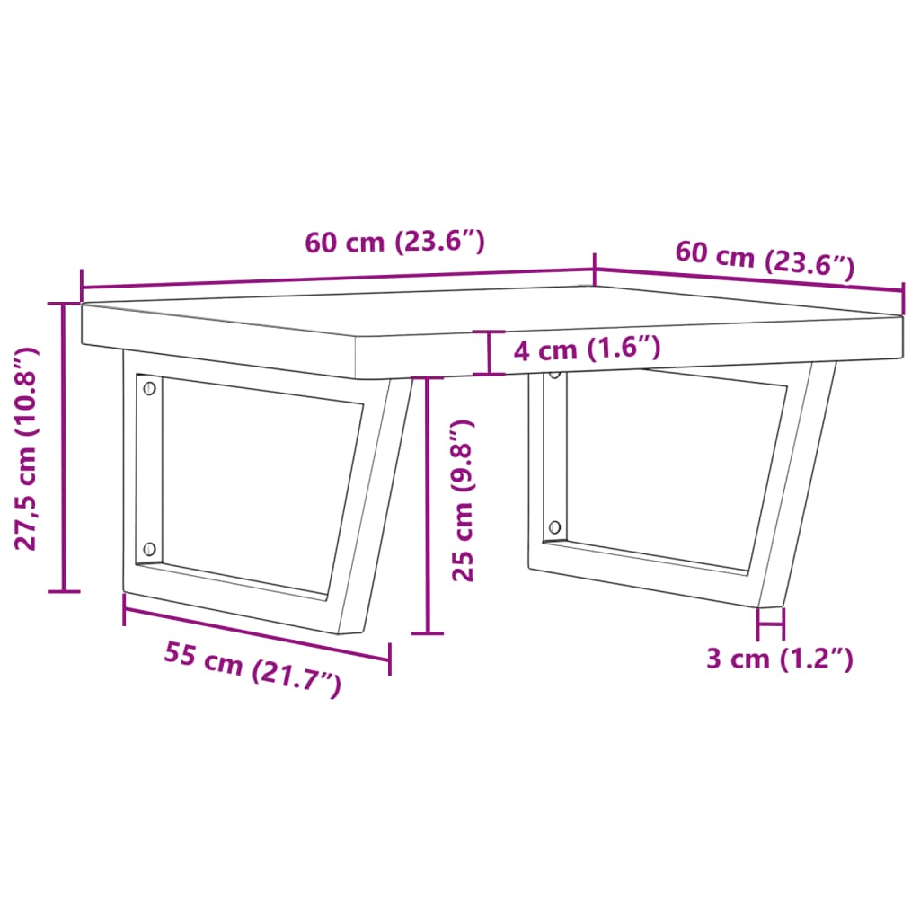 Mål bordplade: 50 x 50 x 2,5 cm (L x B x T)