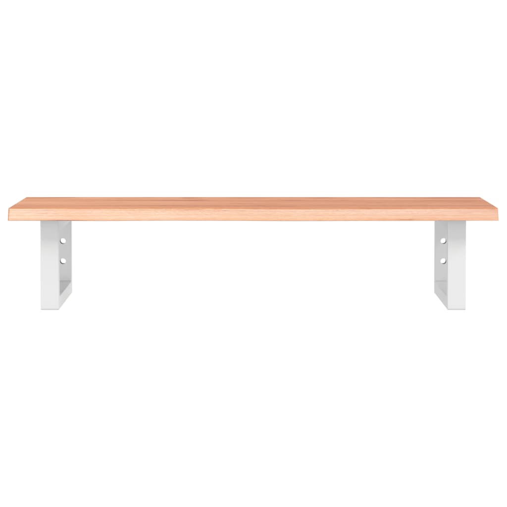 - Farve: Lysebrun træplade med hvide stålbeslag