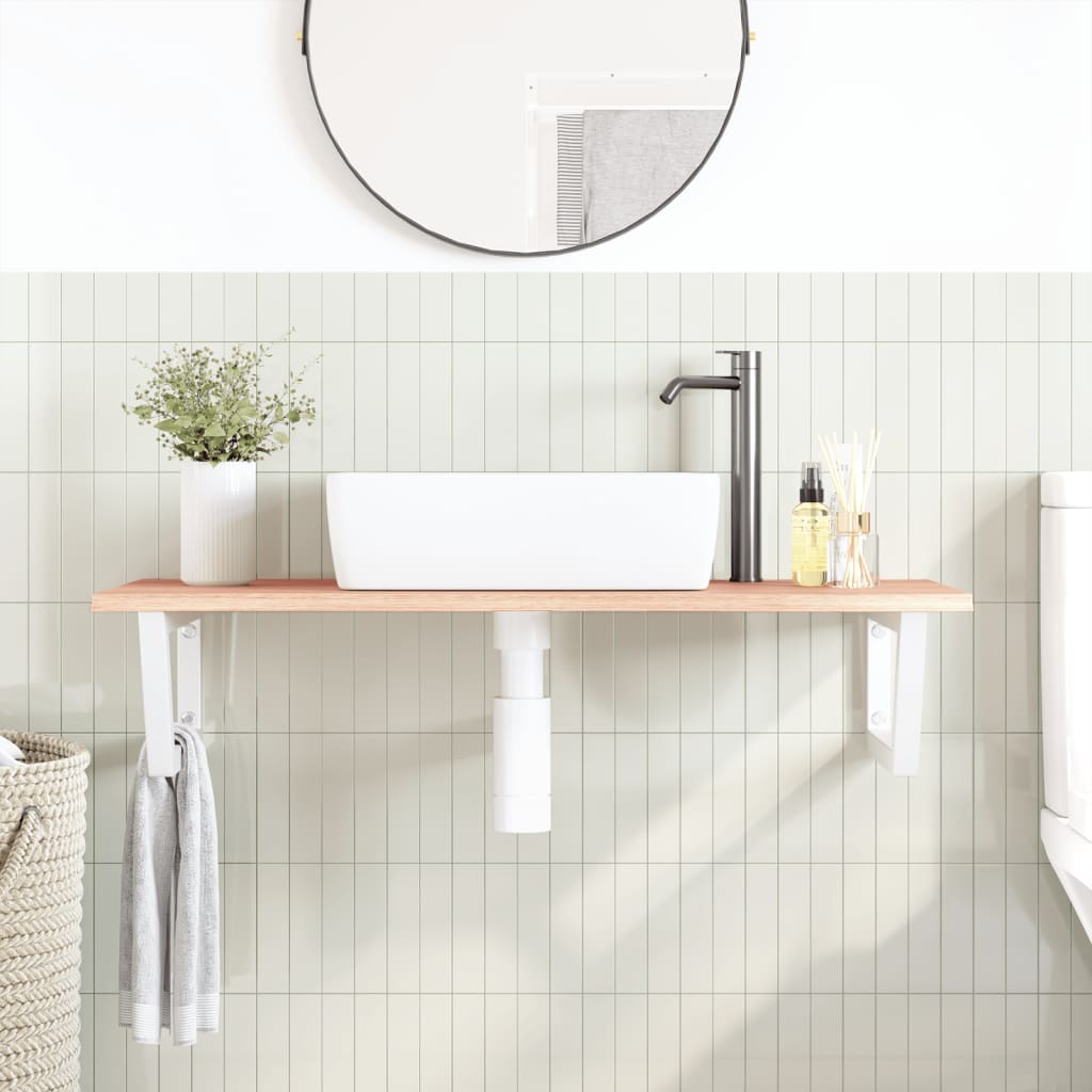 Monteringen er gjort enkel med forborede huller, der giver dig fleksibilitet til at placere hylden præcis hvor du ønsker det - hvad enten det er over håndvasken, ved siden af spejlet eller som en praktisk opbevaringsløsning i brusenichen. Den massive egetræsplade er behandlet med en beskyttende lak, der gør overfladen modstandsdygtig over for fugt og nem at rengøre.