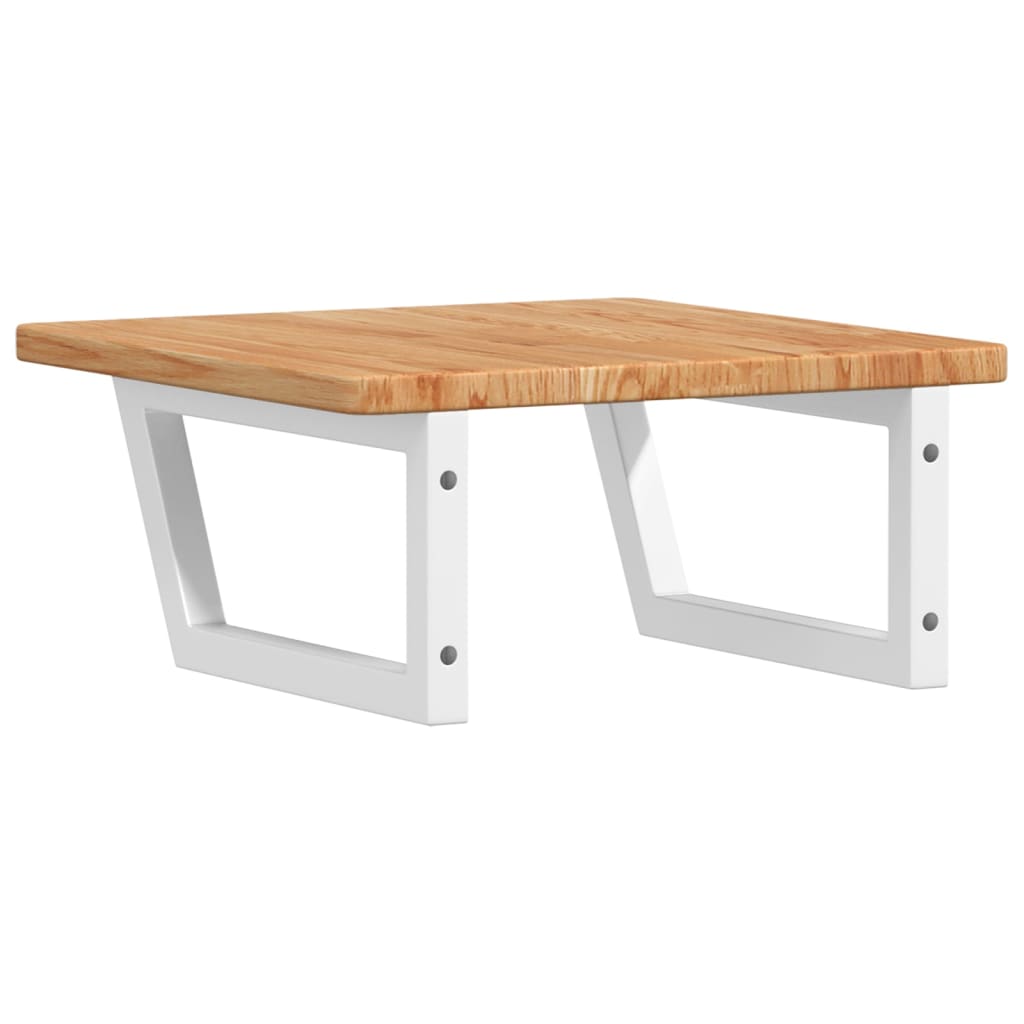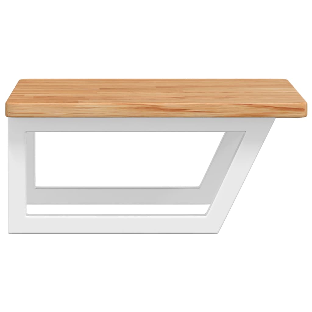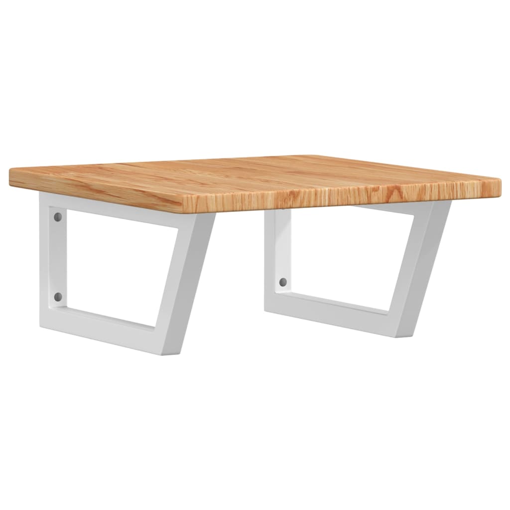 Den trapezformede hylde er designet til at maksimere pladsen på dit badeværelse. Med sin solide konstruktion i hvidlakeret stål og en smuk top i lysebrun massiv eg, får du både holdbarhed og æstetik i én løsning. Hylden kan monteres fleksibelt i venstre side, højre side eller centralt på væggen, så den passer perfekt ind i netop dit badeværelse.