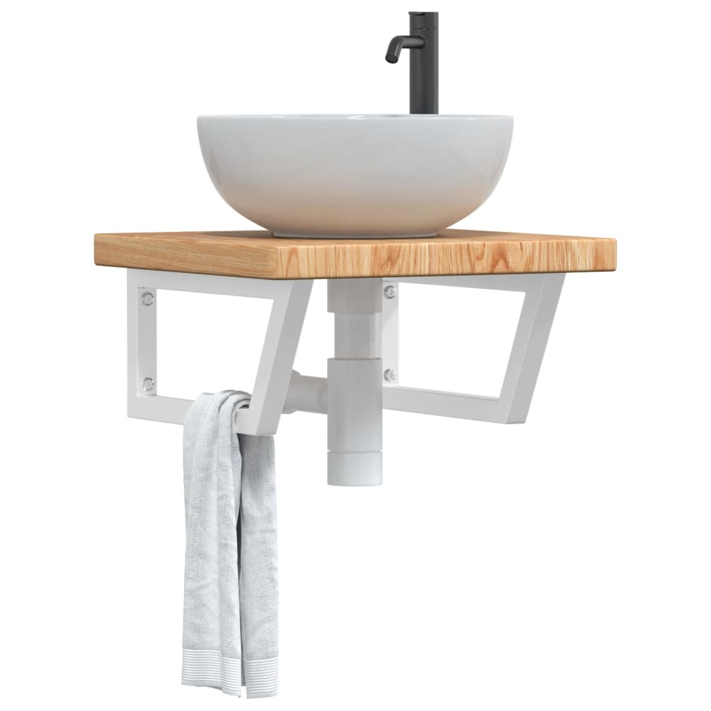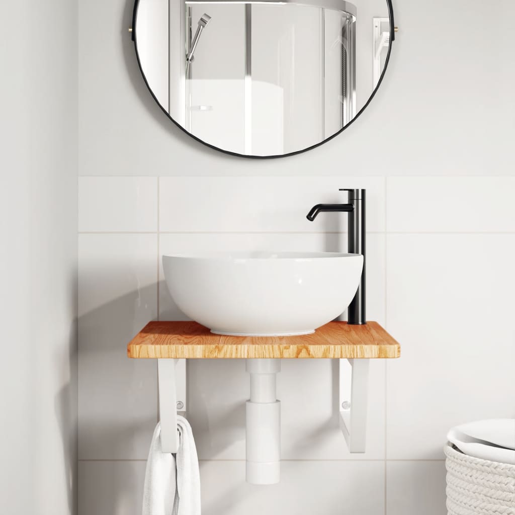 Den robuste stålkonstruktion sikrer, at hylden kan bære op til 100 kg, hvilket gør den ideel til både lette og tungere genstande. Egetræstoppen er behandlet med lak, der beskytter træet mod fugt og gør det nemt at rengøre - perfekt til det fugtige badeværelsesmiljø.