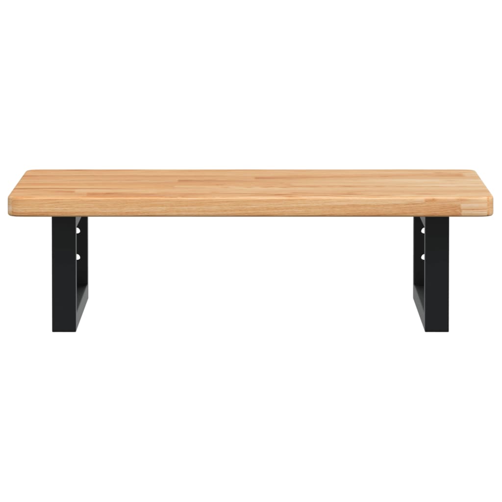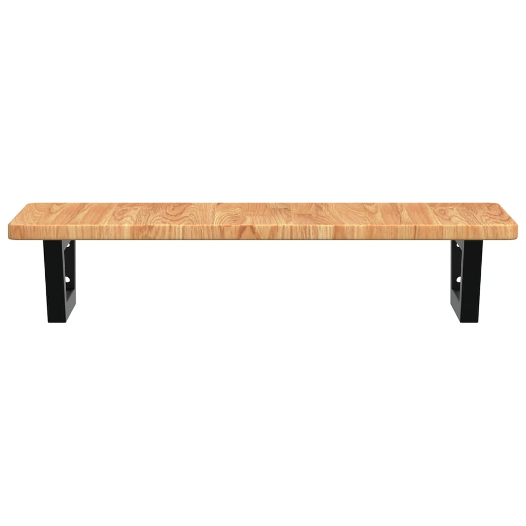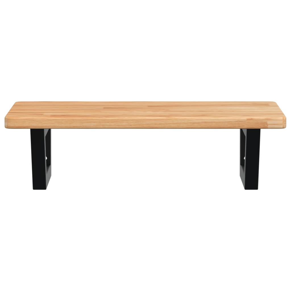 Med sit moderne design i lysebrun egetræ og sort stål tilføjer denne vægmonterede hylde både stil og ekstra opbevaringsplads til ethvert badeværelse. Den lakerede overflade på egetræet sikrer nem rengøring og beskyttelse mod fugt, hvilket er essentielt i badeværelsesmiljøer.