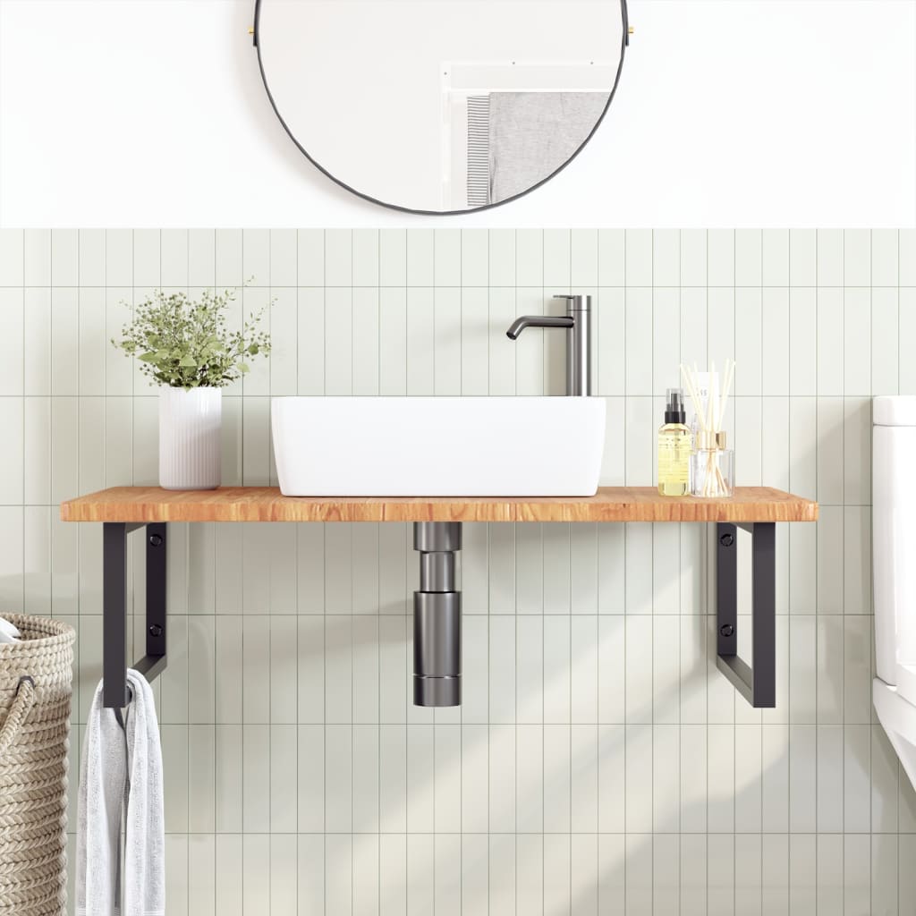 Opgrader dit badeværelse med denne elegante væghængte hylde, der kombinerer stilfuldt design med praktisk funktionalitet. Hylden er fremstillet med en robust stålkonstruktion og en smuk top i massivt egetræ, hvilket giver dig både holdbarhed og et tidløst udtryk, der passer perfekt ind i moderne badeværelser.