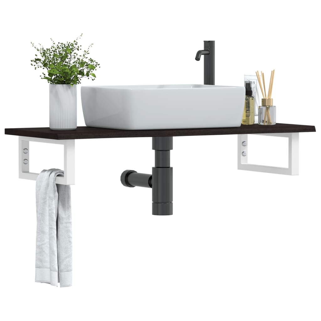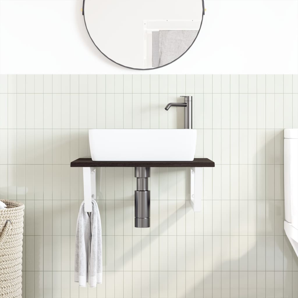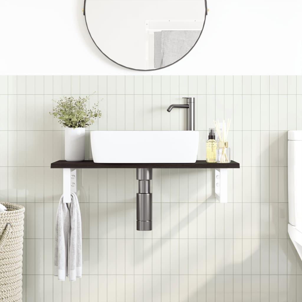 Badeværelseshylde Stål Og Massivt Egetræ Mørkebrun Og Hvid