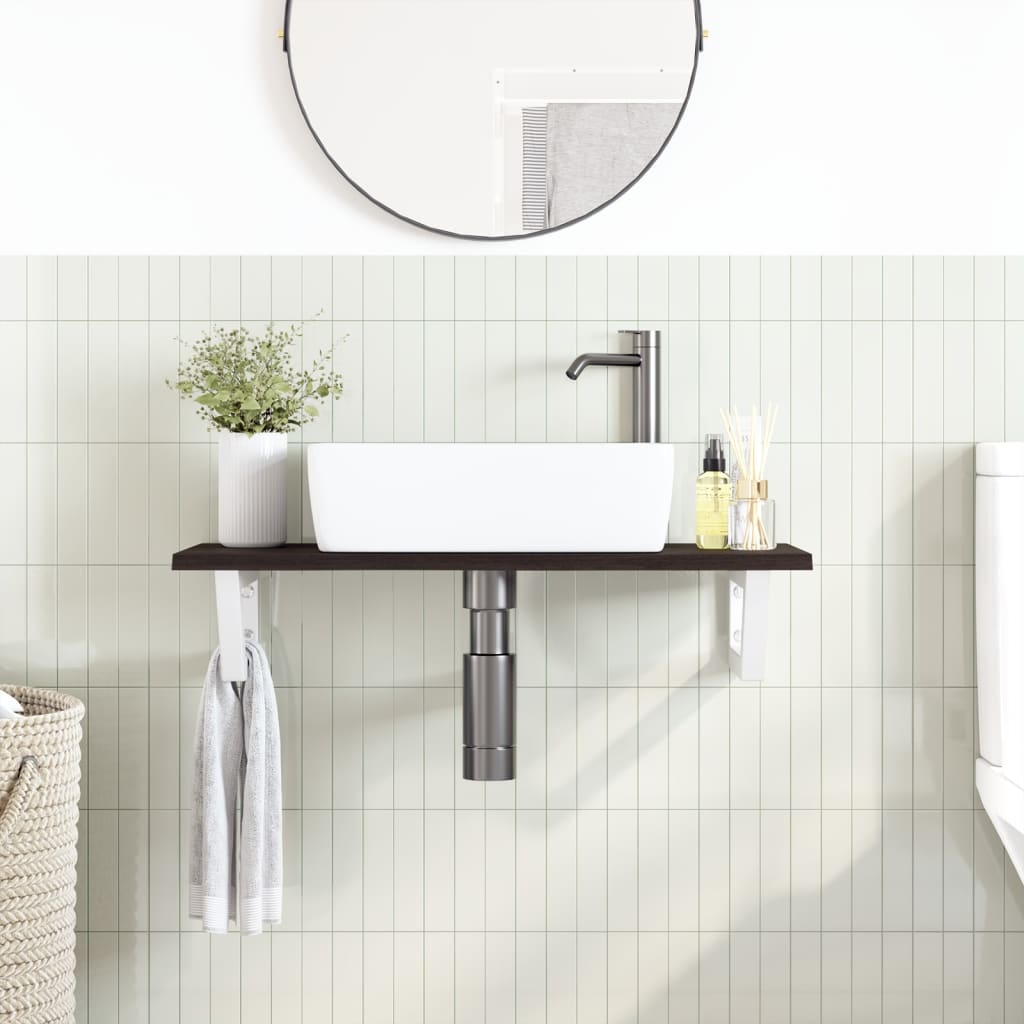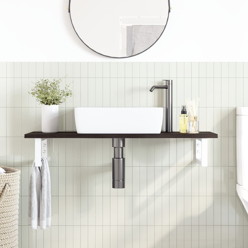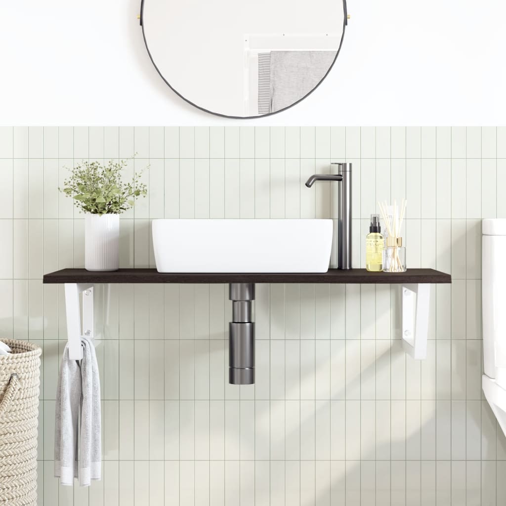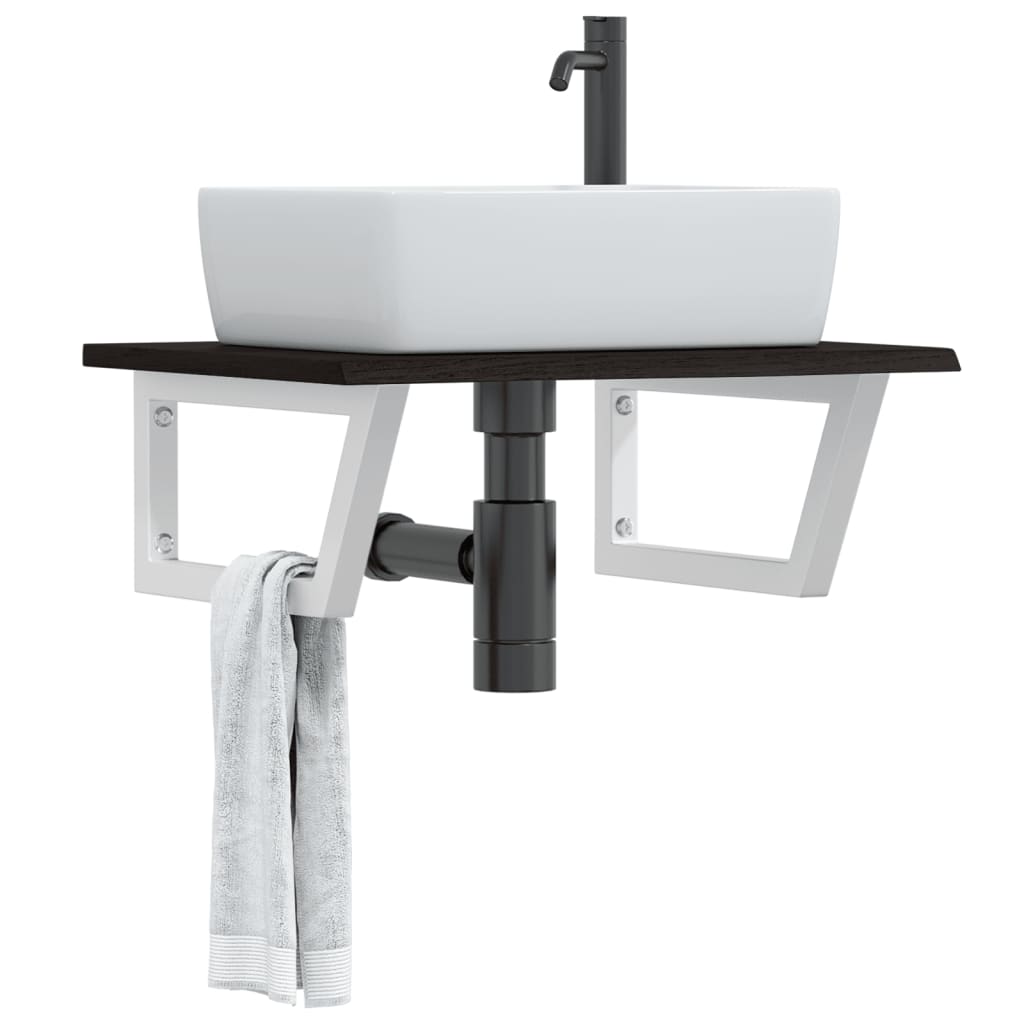 Badeværelseshylde Stål Og Massivt Egetræ Mørkebrun Og Hvid