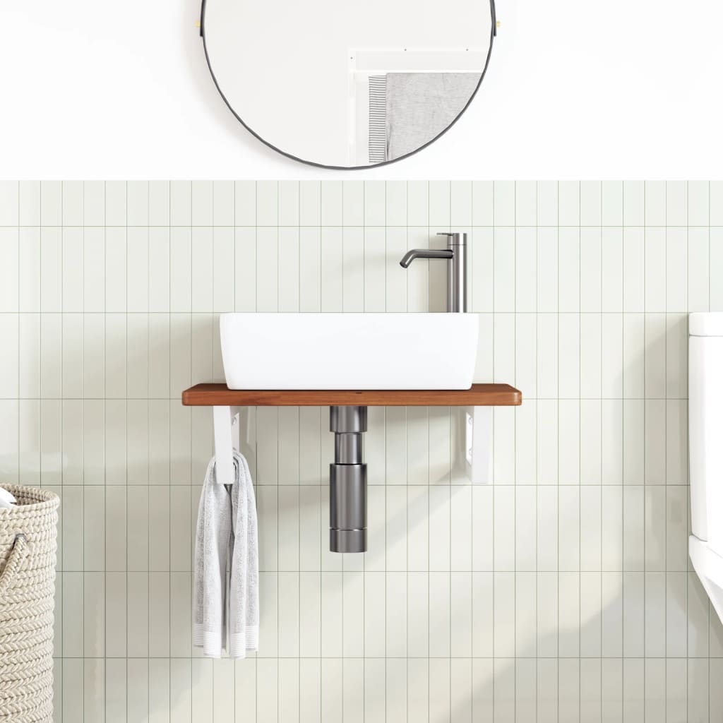 Badeværelseshylde Stål Og Massivt Egetræ Mørkebrun Og Hvid