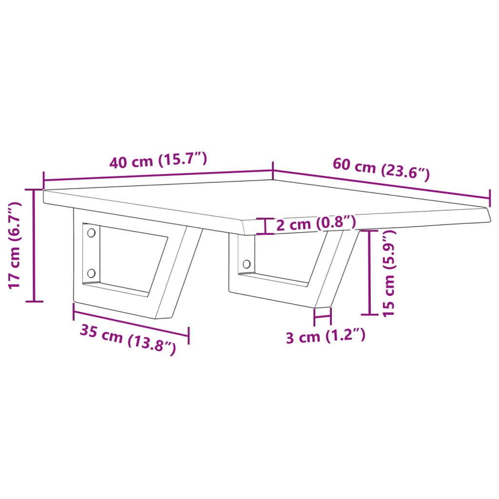 - Mål hyldebeslag: 25 x 55 cm (B x L)
