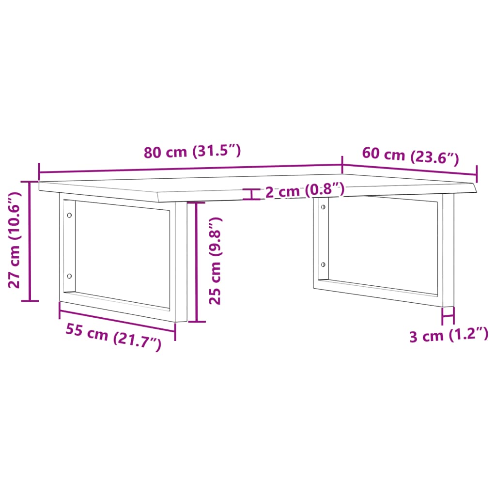 - Mål bordplade: 80 x 60 x 2 cm (L x B x T)
