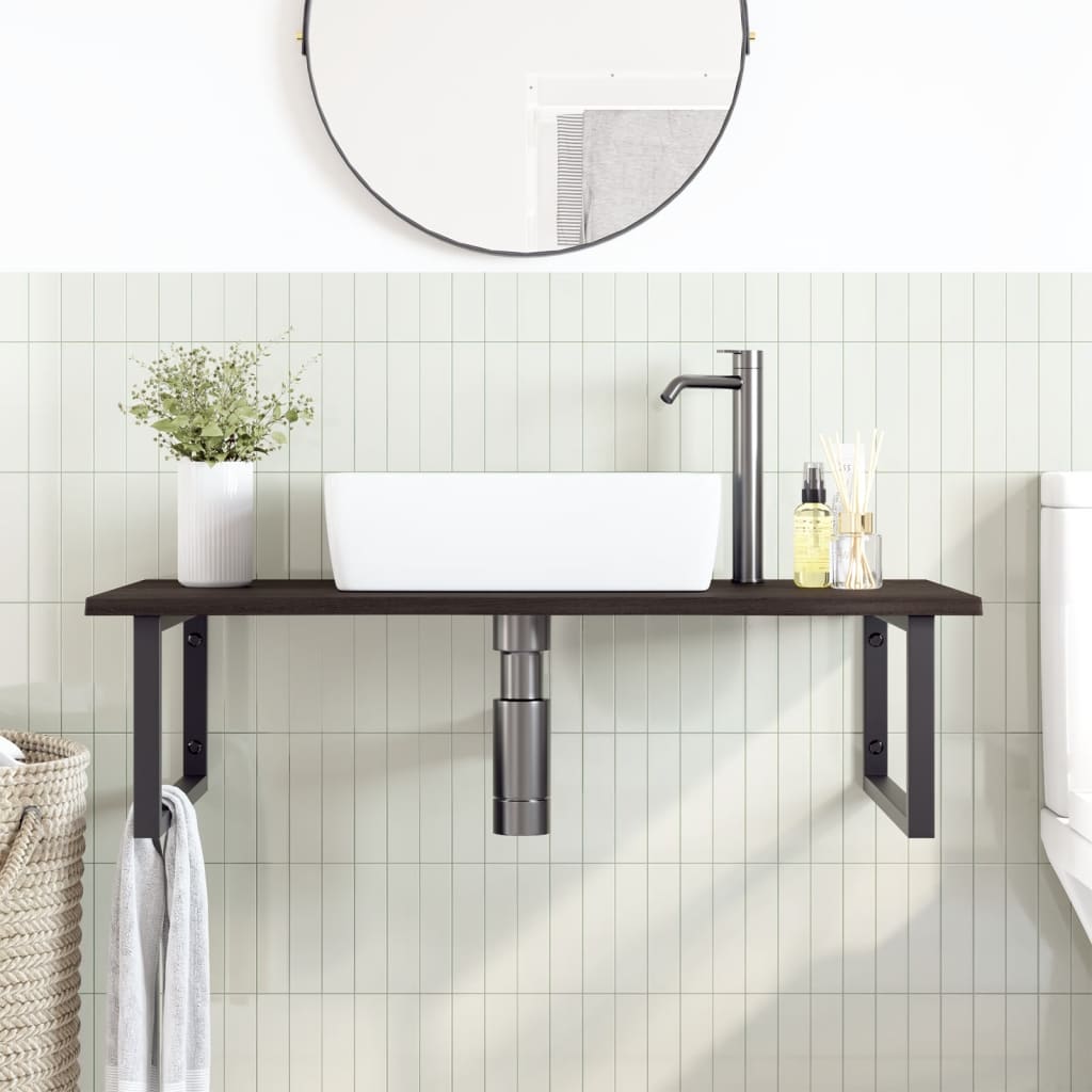Badeværelseshylde Stål Og Massivt Egetræ Mørkebrun Og Sort