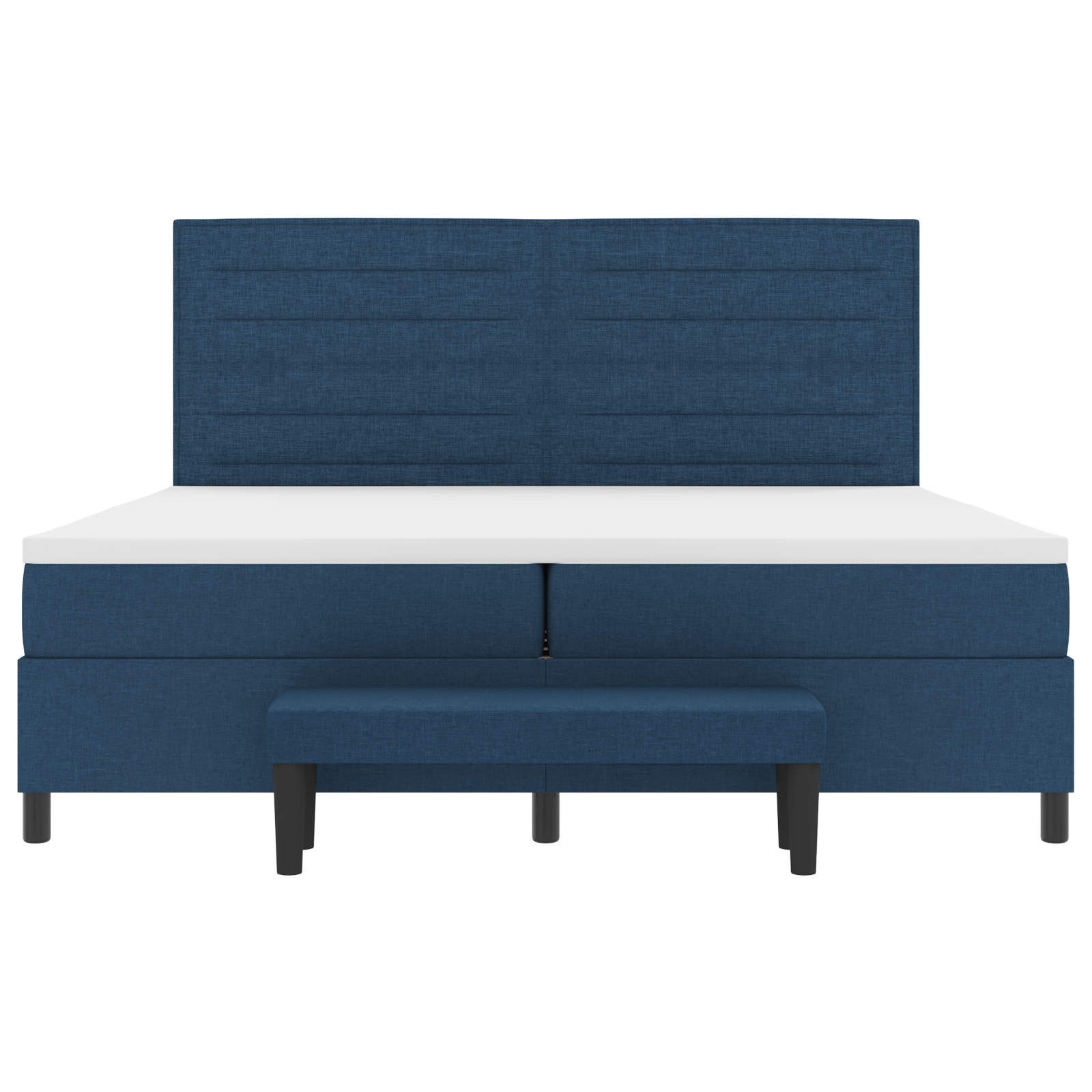 Box Spring Seng Med Madras Med Hovedgærde Blå 200 X 200 Cm Stof