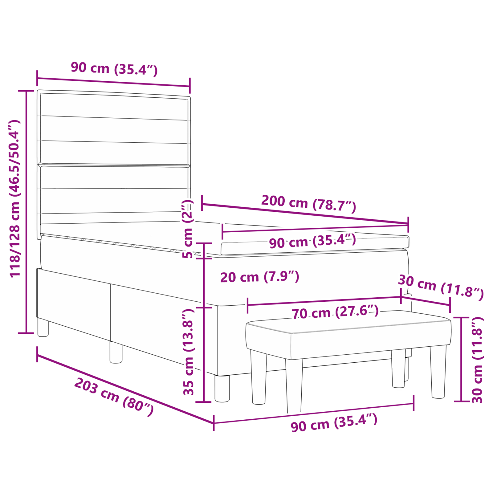 Denne box spring seng i mørk grå kombinerer komfort og moderne design til det perfekte soveværelse. Med sine kompakte mål på 90x200 cm er den ideelt til enkeltpersoner, der ønsker en luksuriøs søvnoplevelse uden at gå på kompromis med pladsen.
