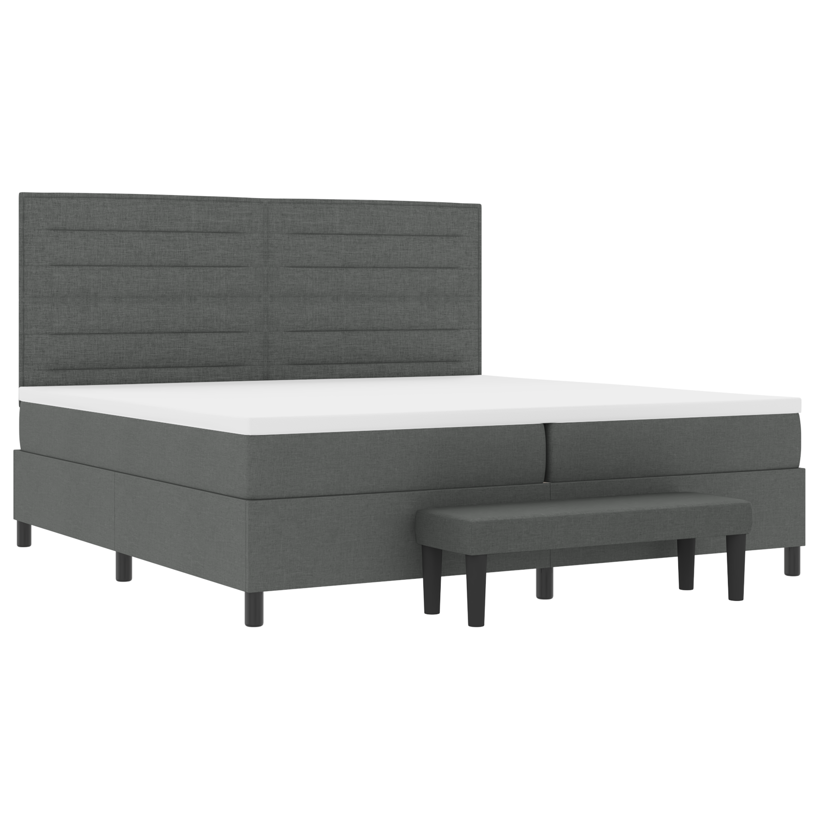 Denne elegant box spring seng i mørkegrå stof skaber det perfekte fundament for din soveværelse. Med sine generøse 200x200 cm dimensioner giver den optimal plads til to personer, samtidig med at det moderne design tilføjer et sofistikeret udtryk til enhver indretning.