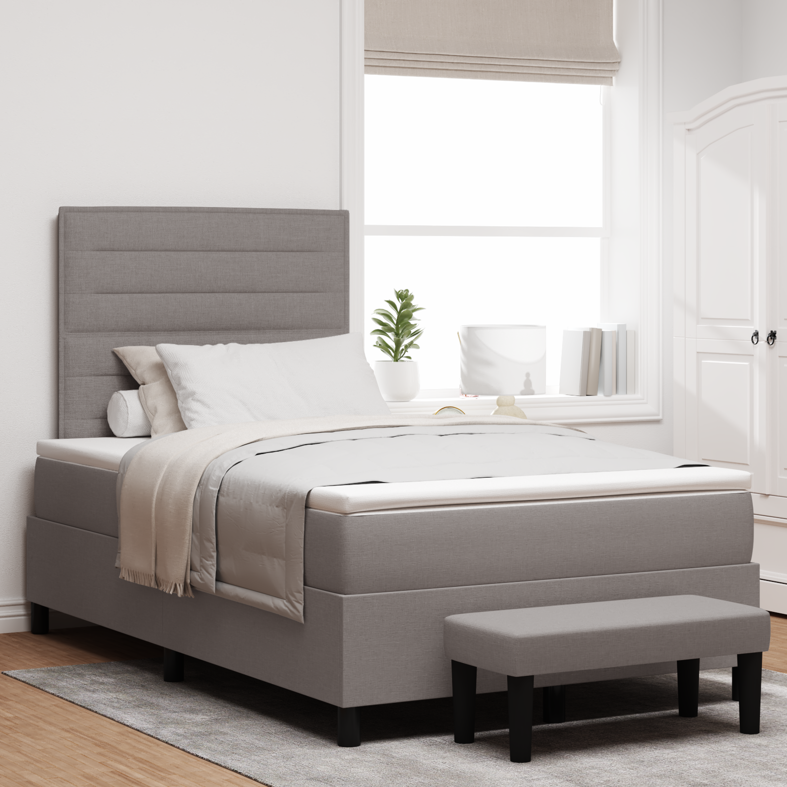 Denne stilfulde box spring seng i taupe stof er den perfekte kombination af moderne design og overlegen komfort til dit soveværelse. Den 120x200 cm seng leveres komplet med madras, topmadras og praktisk bænk, så du får alt til dit drømmesoveværelse i ét køb.