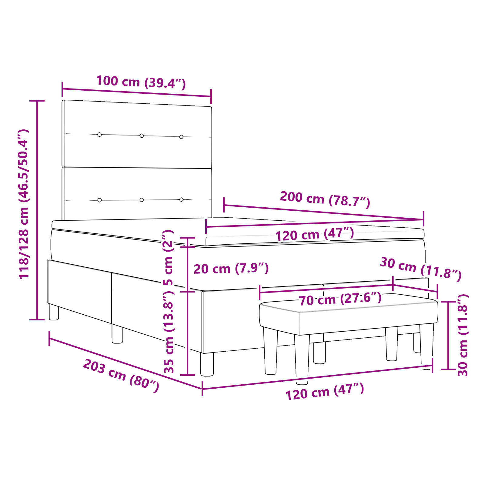 Box Spring Seng Med Madras Gråbrun 120 X 200 Cm Stof
