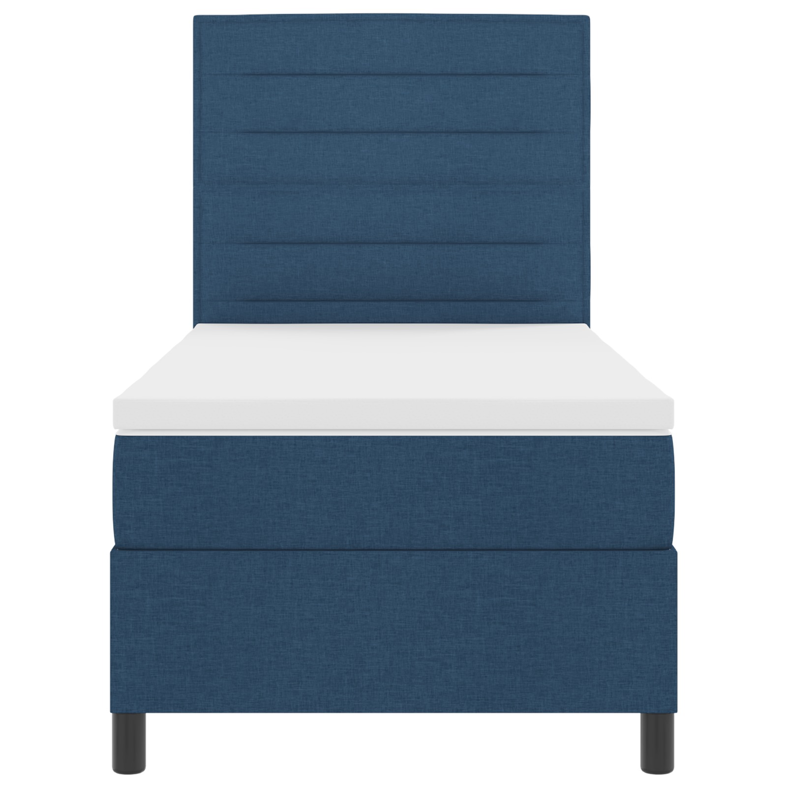 Box Spring Seng Med Madras Med Hovedgærde Blå 100 X 200 Cm Stof