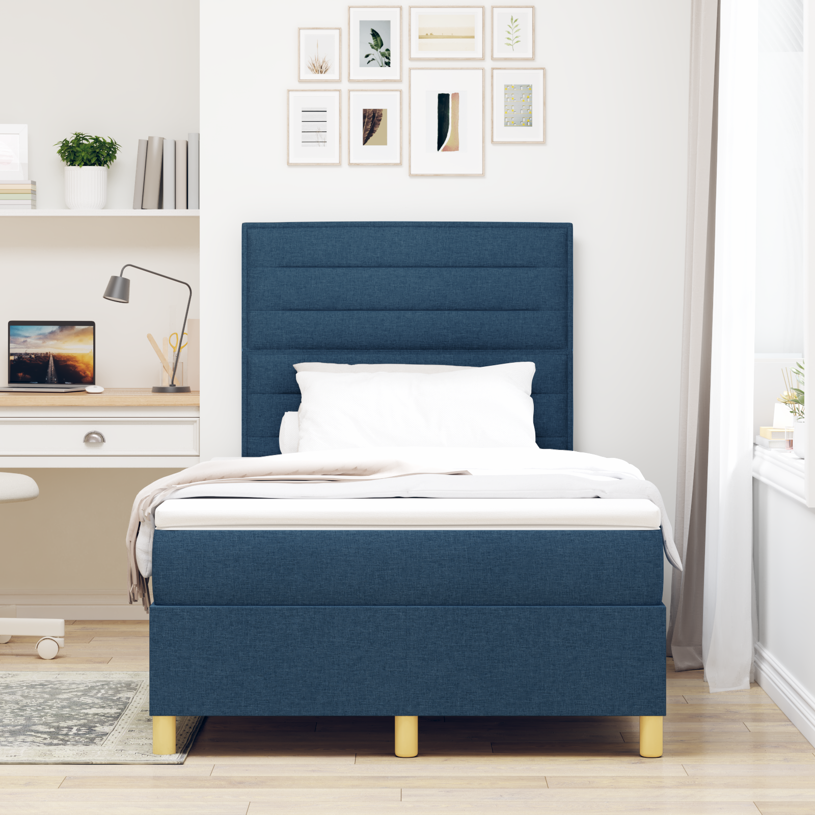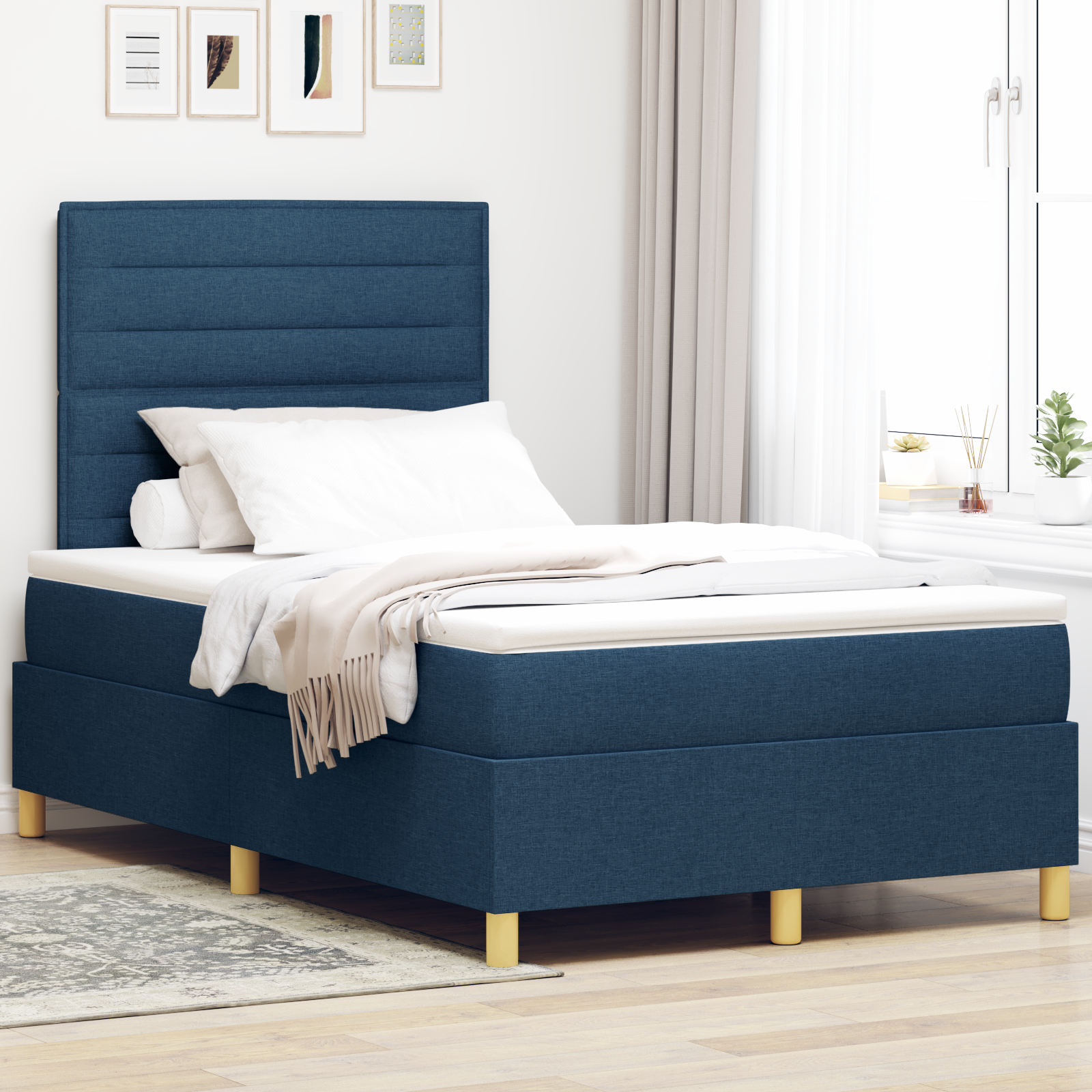 Box Spring Seng Med Hovedgærde Blå 120 X 200 Cm Stof