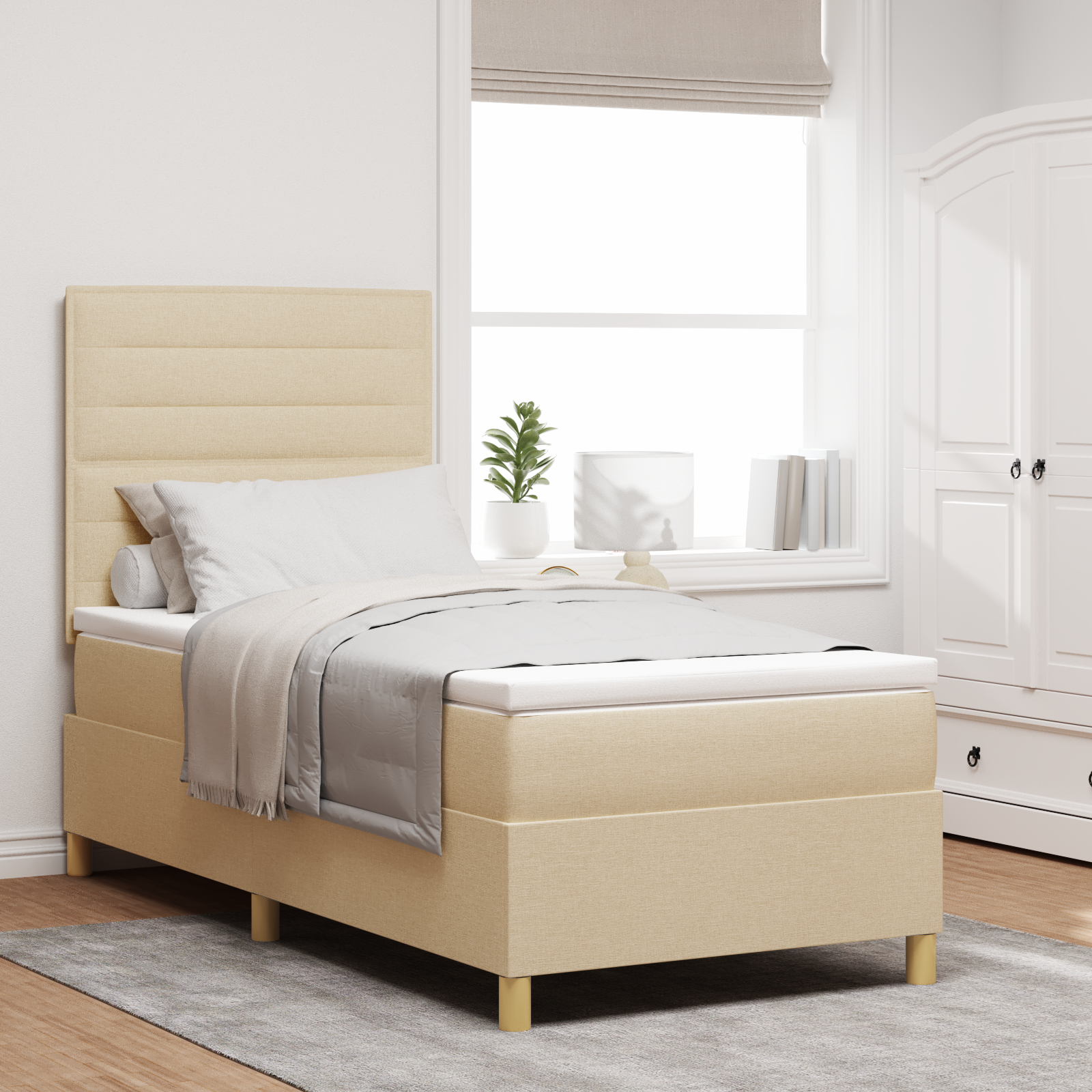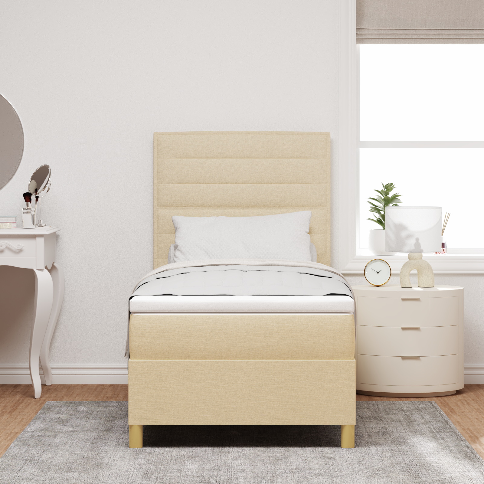 Box Spring Seng Med Hovedgærde Creme 100 X 200 Cm Stof