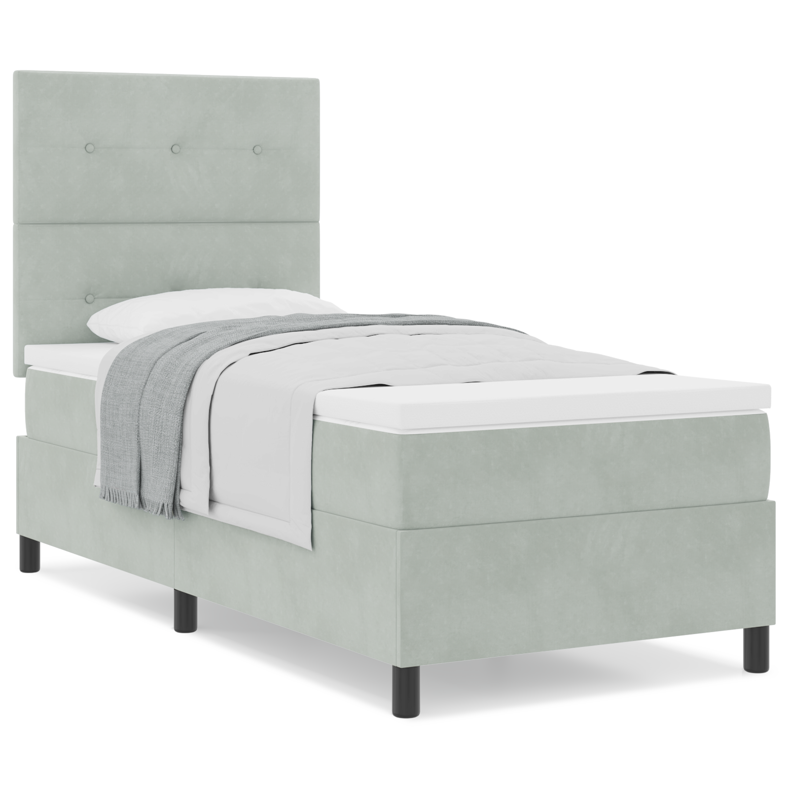 Box Spring Seng Med Madras Lysegrå 90 X 200 Cm Fløjl