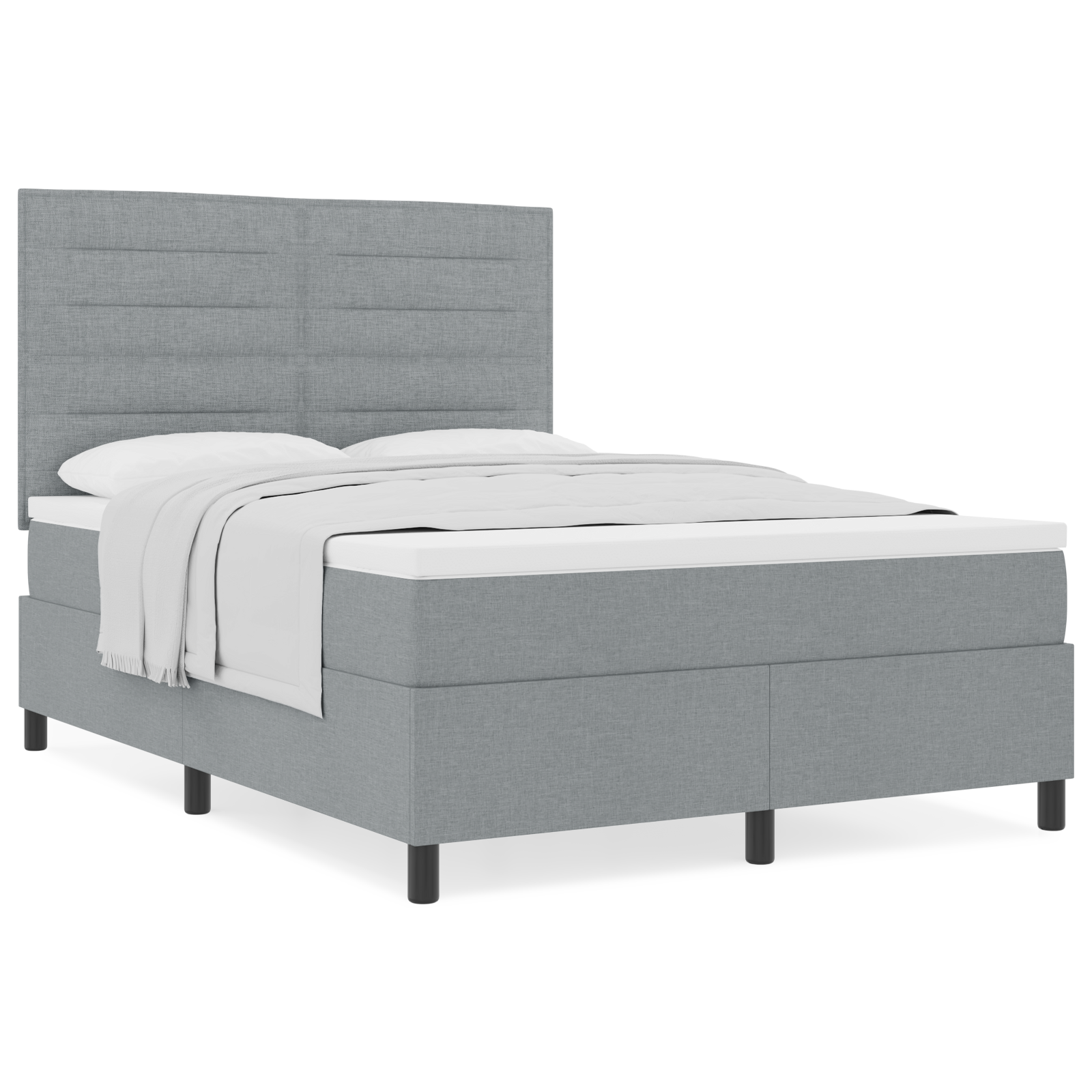 Box Spring Seng Med Madras Lysegrå 160 X 200 Cm Stof