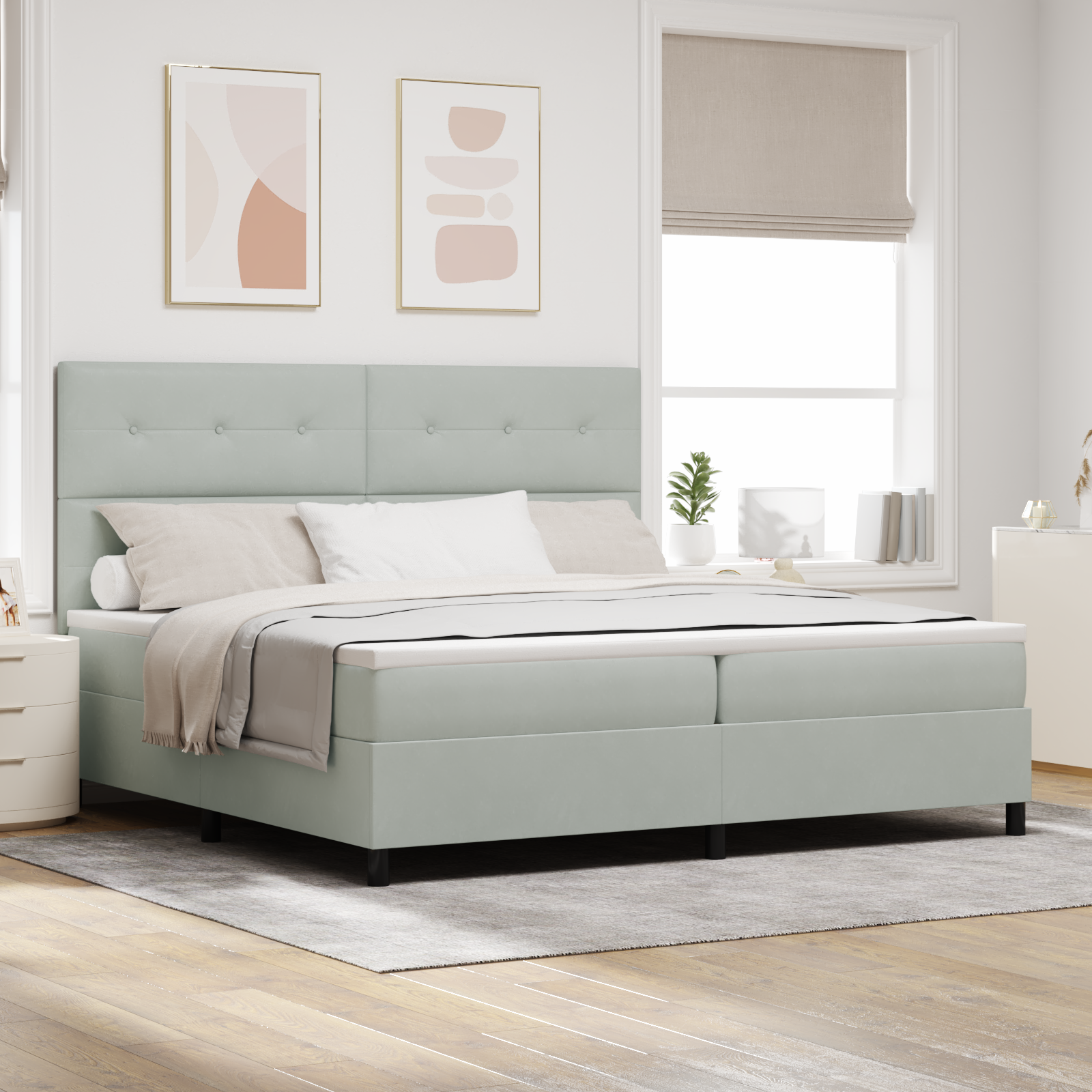 Box Spring Seng Med Madras Lysegrå 200 X 200 Cm Fløjl