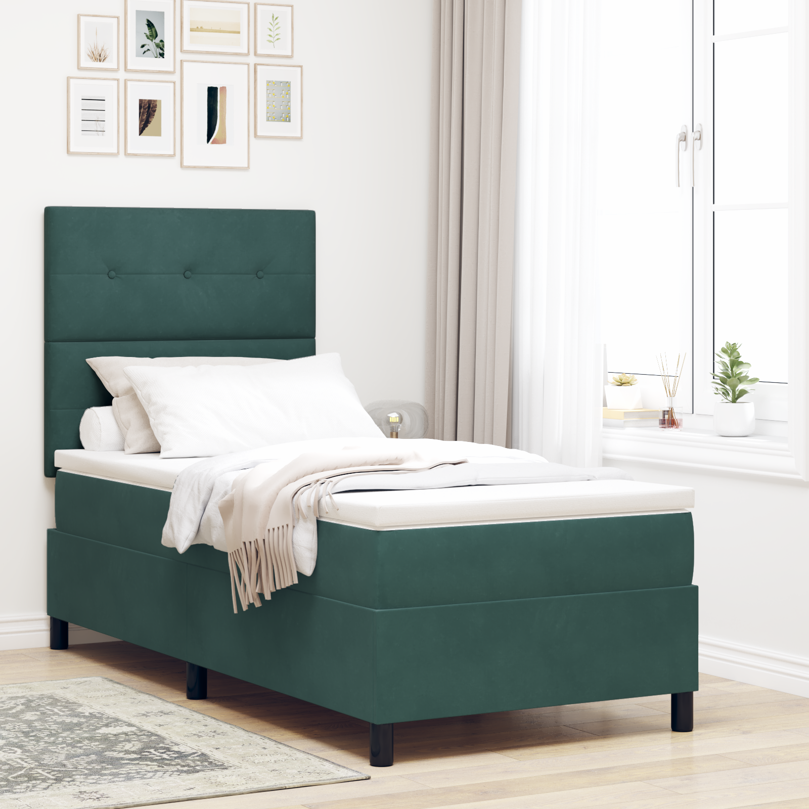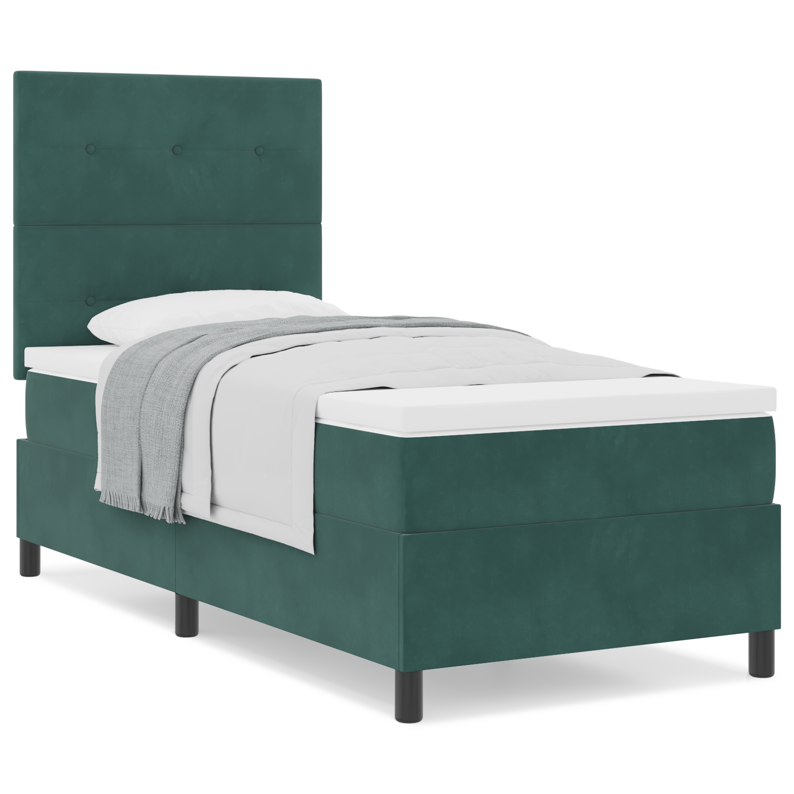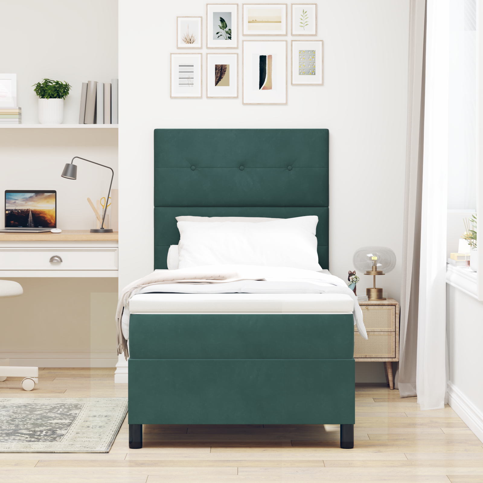 Box Spring Seng Med Madras Mørkegrøn 90 X 200 Cm Fløjl