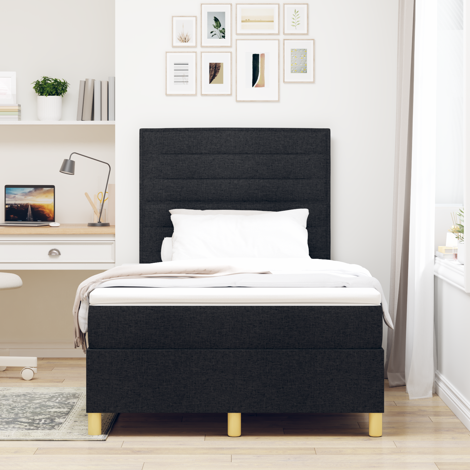 Box Spring Seng Med Hovedgærde Sort 120 X 200 Cm Stof