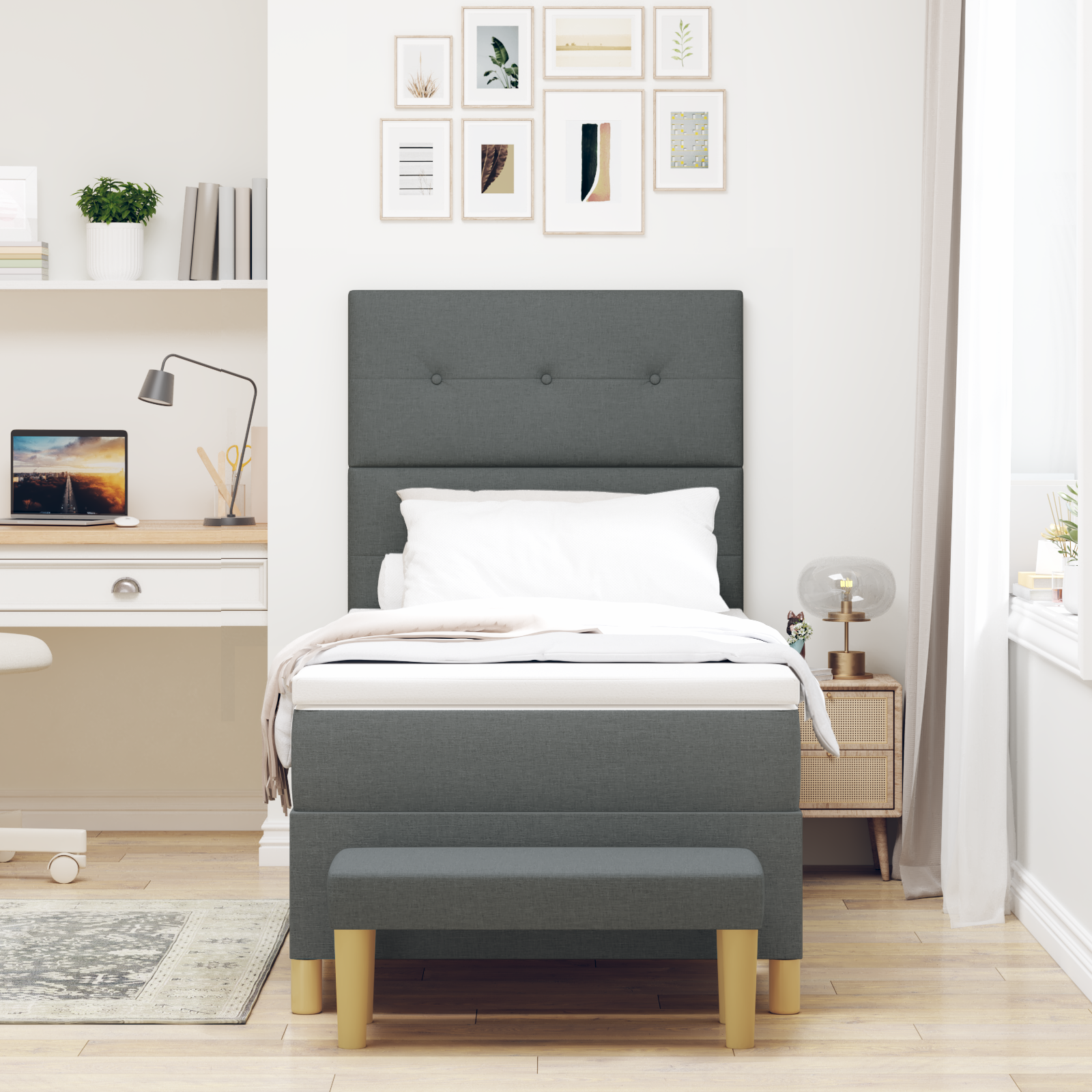 Box Spring Seng Med Madras Mørkegrå 90 X 200 Cm Stof