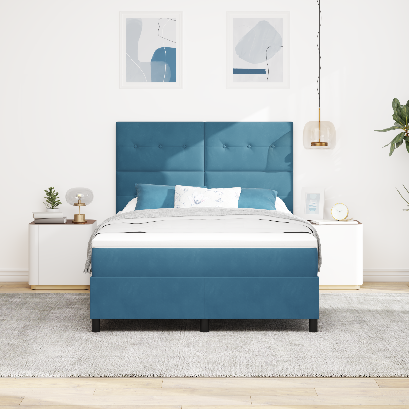 Box Spring Seng Med Madras Mørkeblå 140 X 190 Cm Fløjl