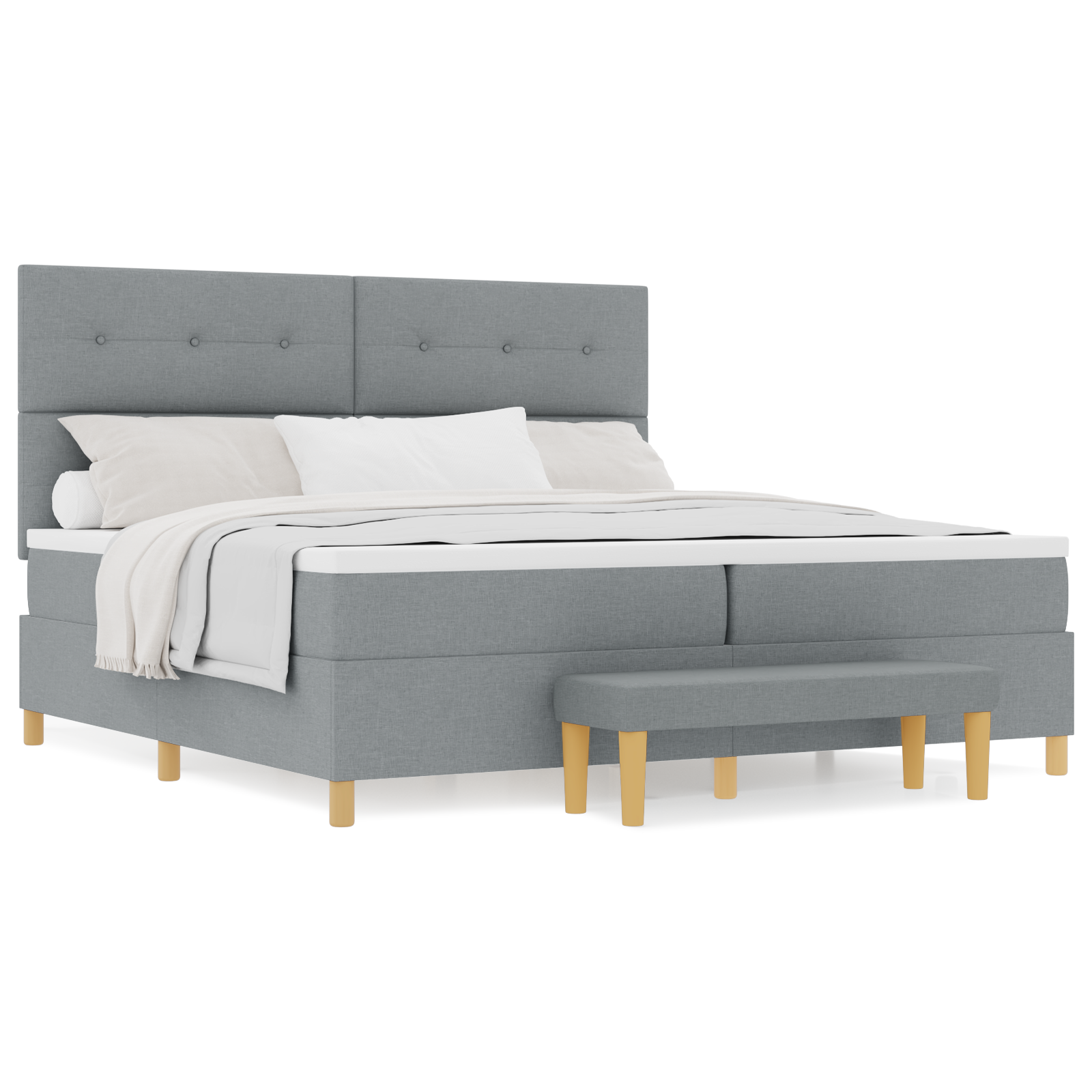 Box Spring Seng Med Madras Lysegrå 200 X 200 Cm Stof