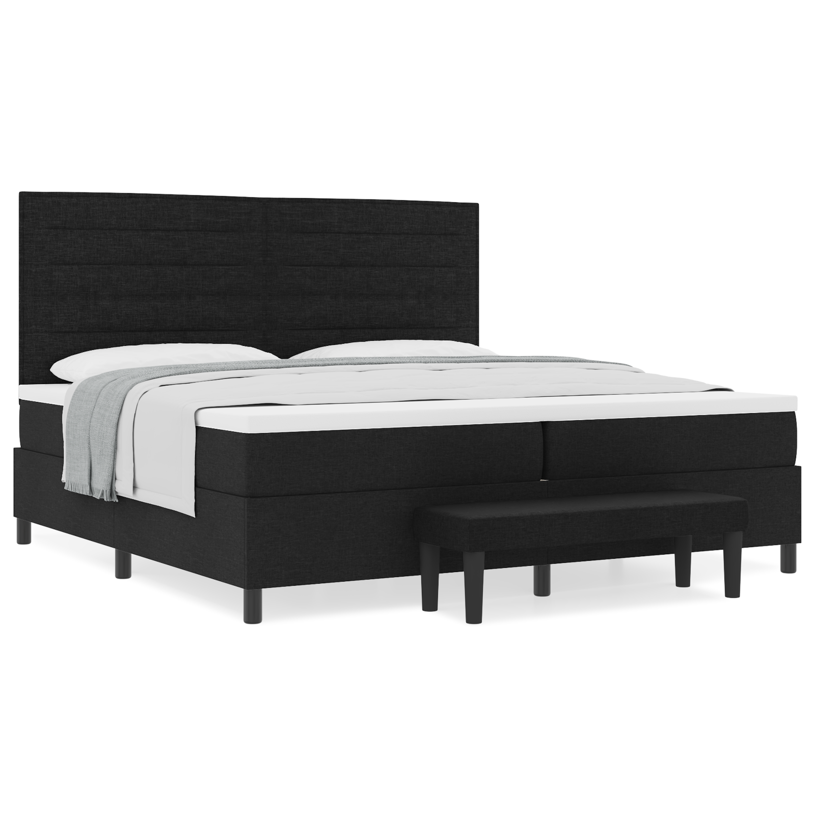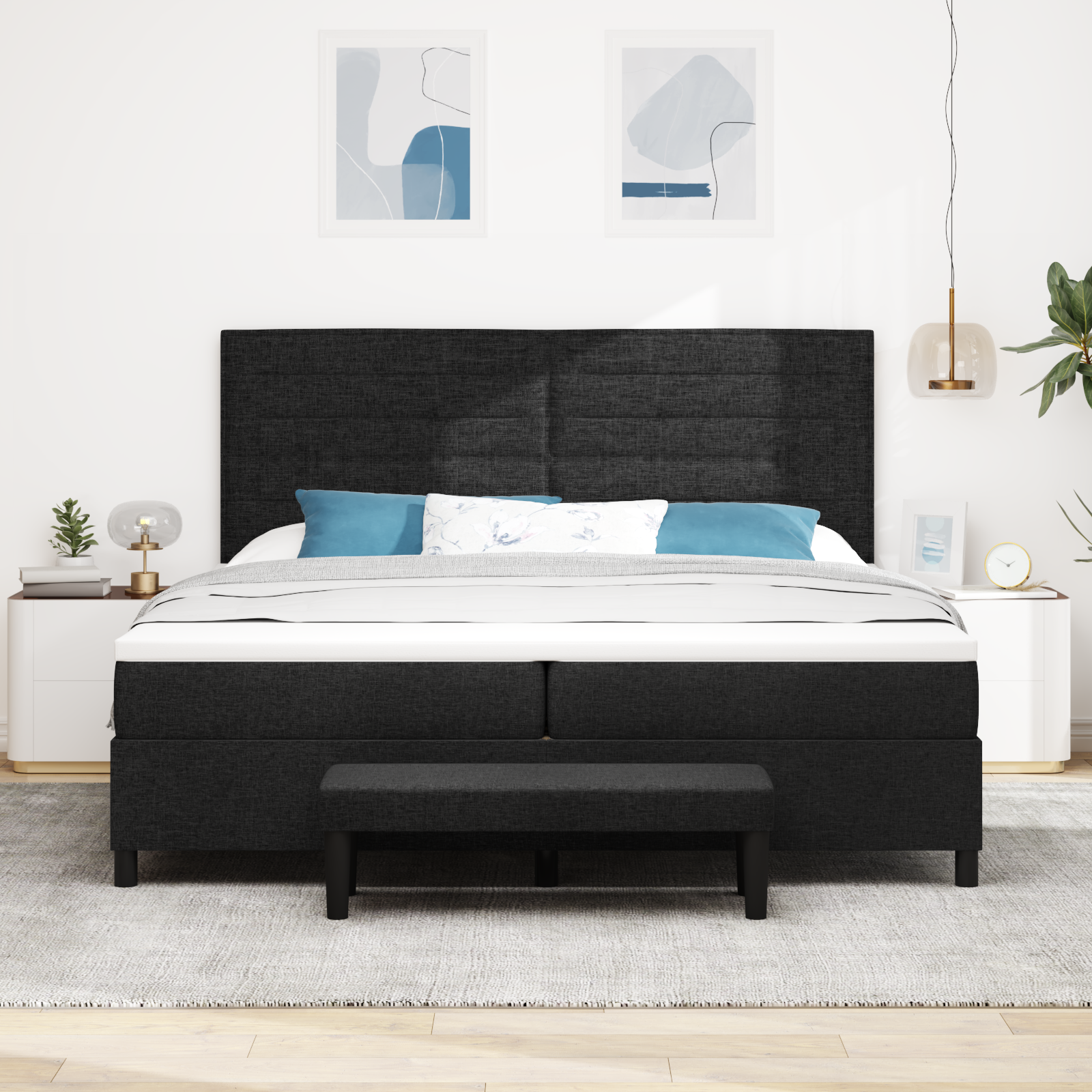 Box Spring Seng Med Madras Sort 200 X 200 Cm Stof