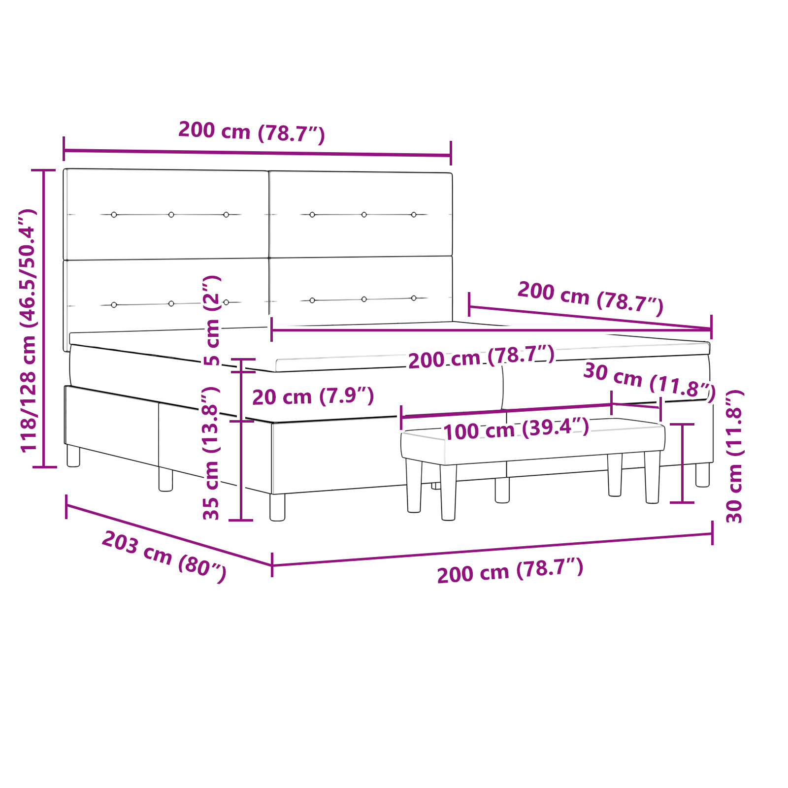 Box Spring Seng Med Madras Gråbrun 200 X 200 Cm Stof