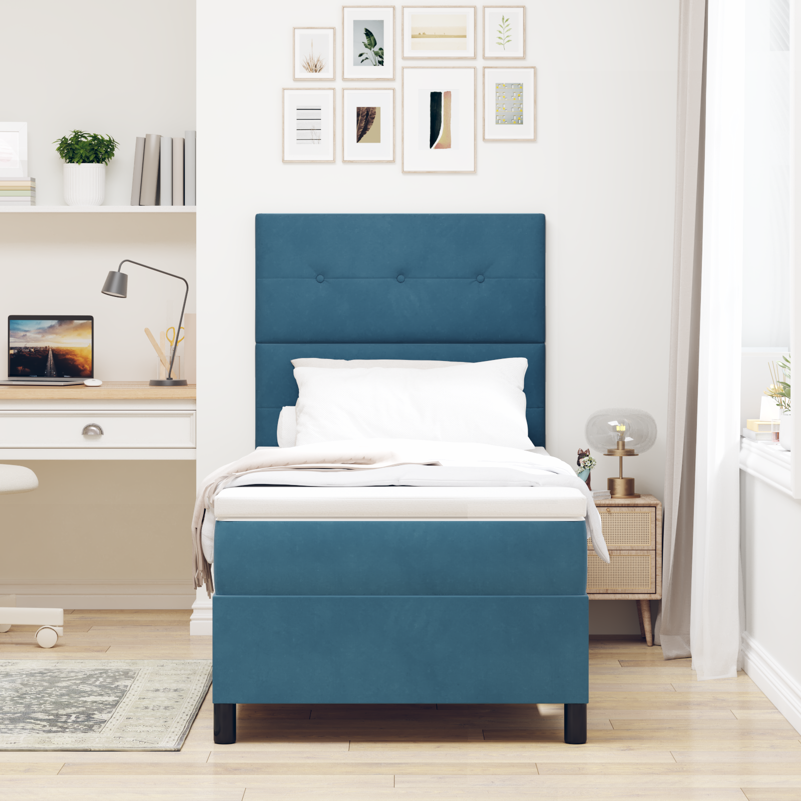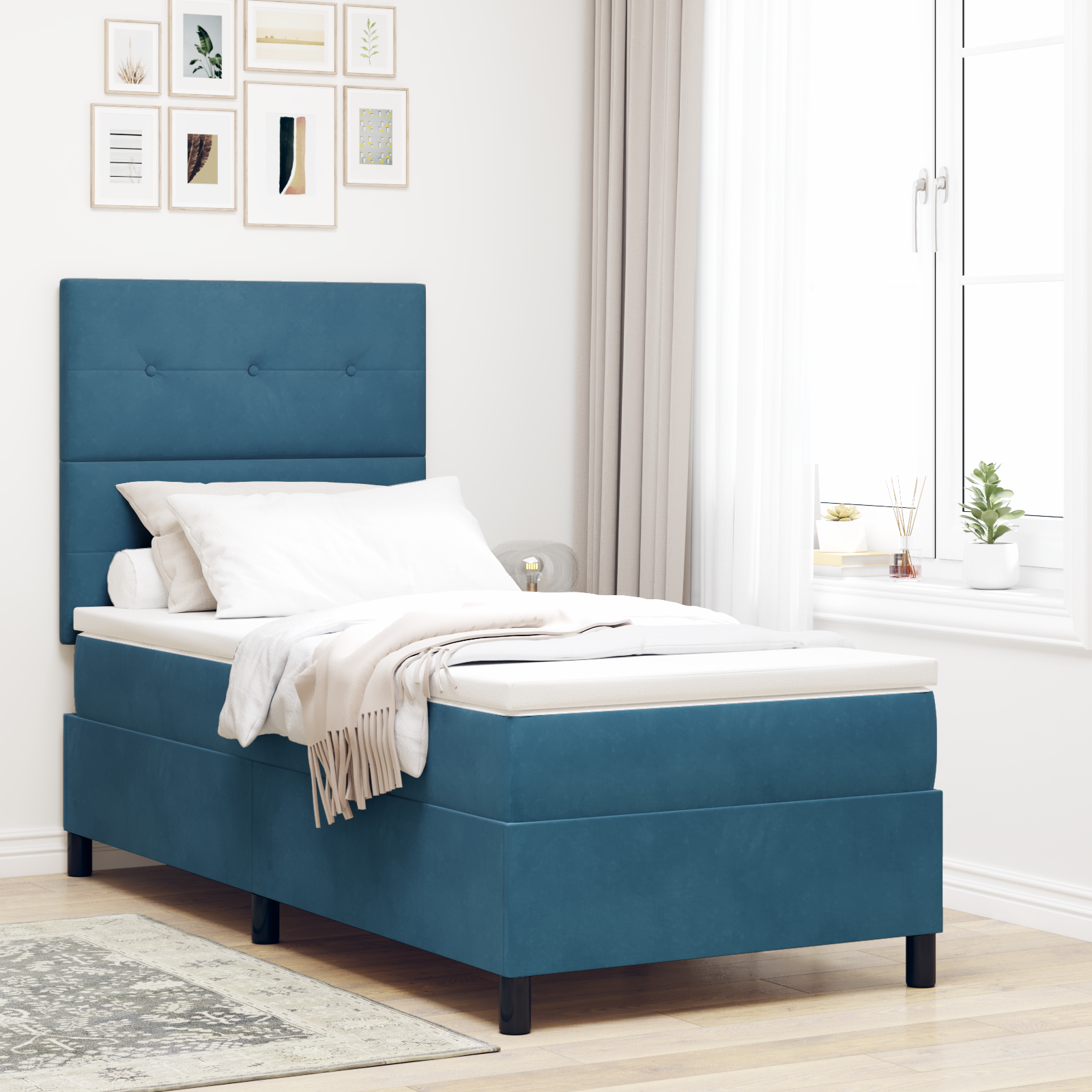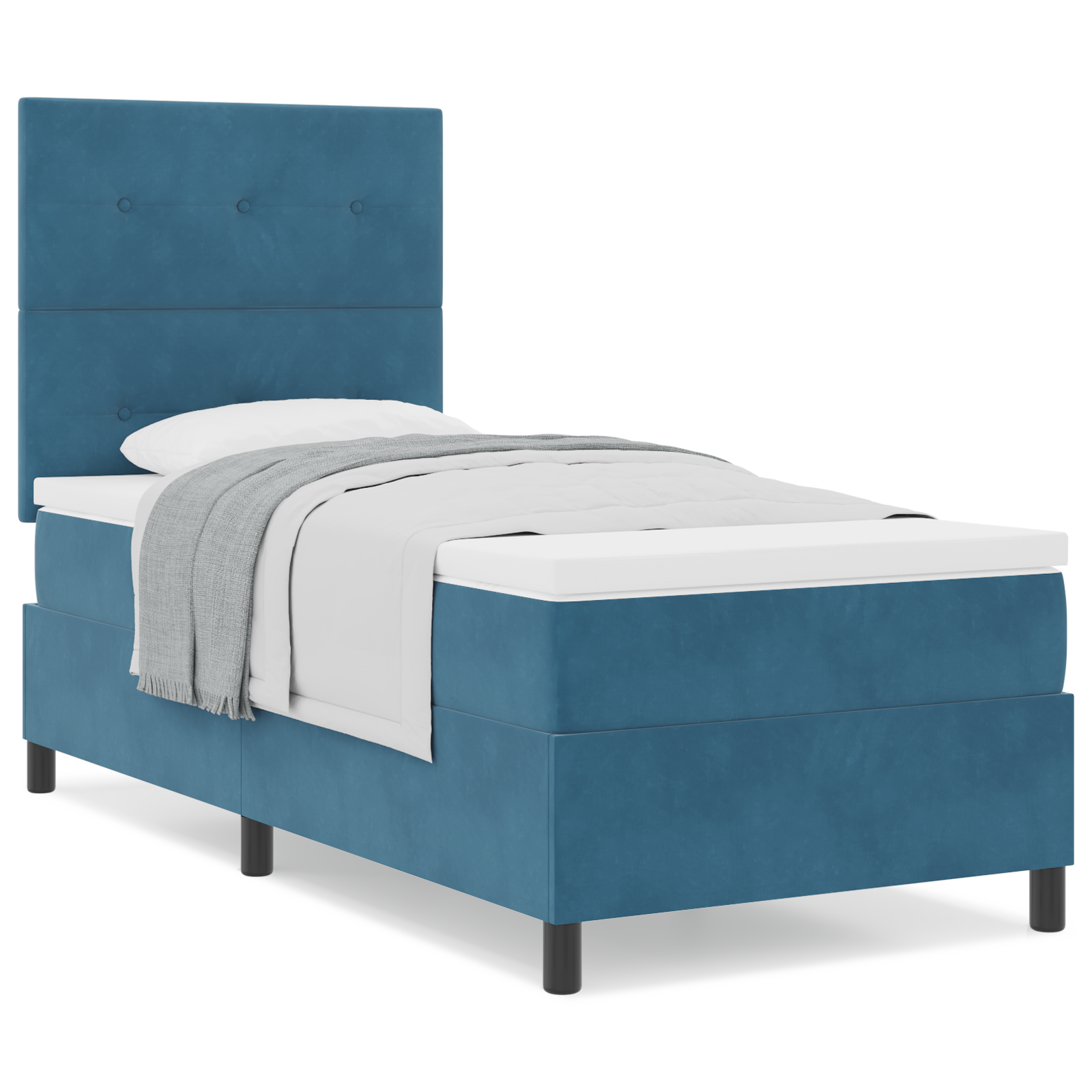 Box Spring Seng Med Madras Mørkeblå 90 X 200 Cm Fløjl