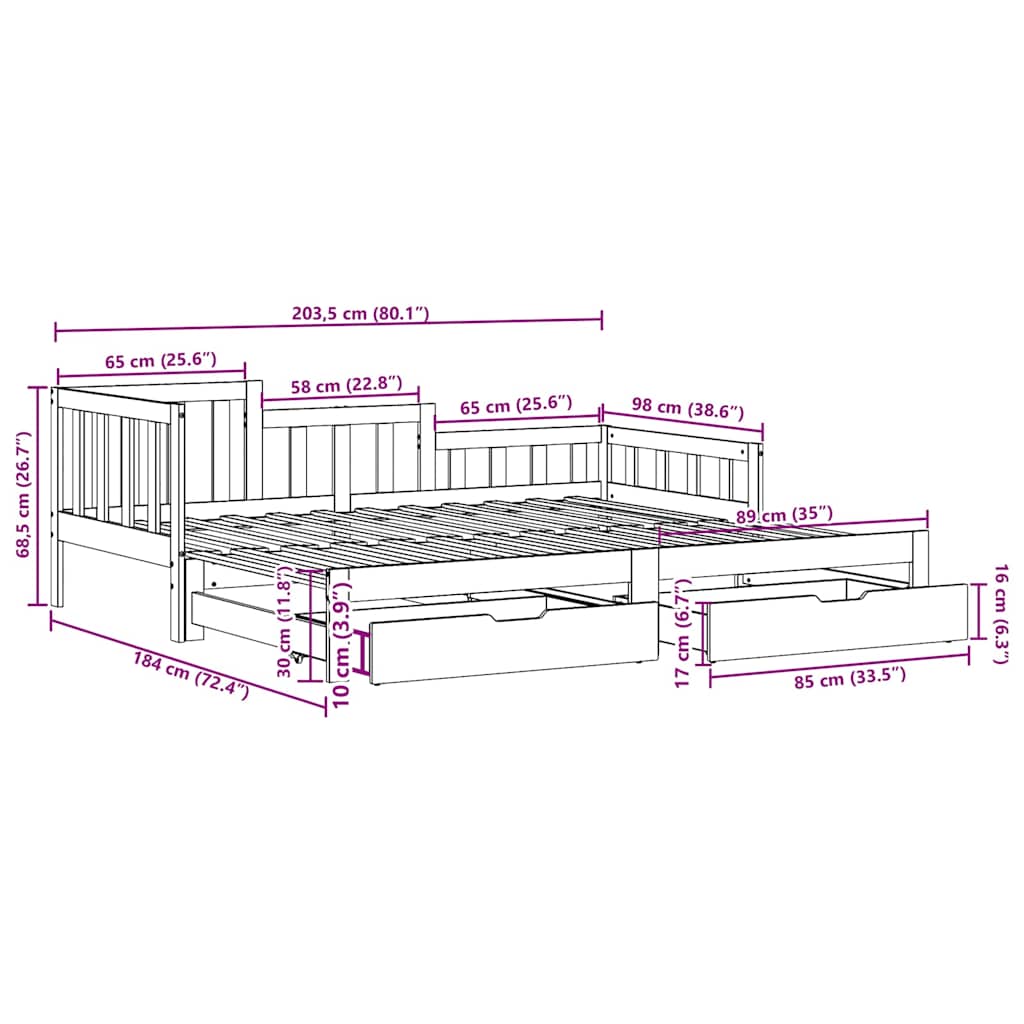 Daybed Med Udtræk Og Skuffer Uden Madras