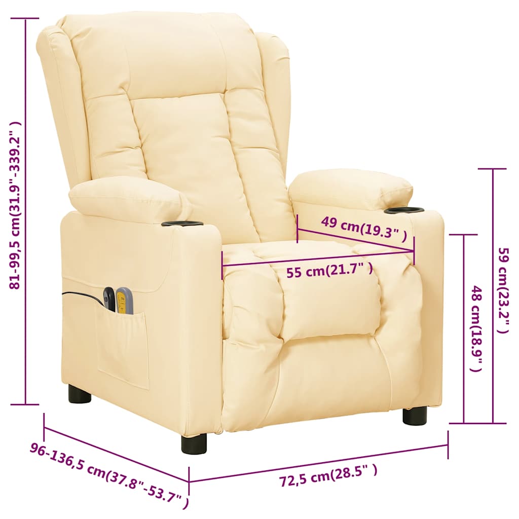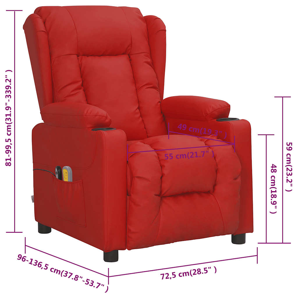 Det tykt polstrede sæde og ryglæn sikrer optimal komfort under hele din afslapningssession. De brede armlæn giver ekstra støtte og er udstyret med to praktiske kopholdere, så du altid har din yndlingsdrik inden for rækkevidde. Stolen er beklædt med holdbart kunstlæder, der ikke kun føles blødt og behageligt mod huden, men også er utroligt nemt at vedligeholde. Materialet er modstandsdygtigt over for pletter og kan rengøres med en fugtig klud, hvilket gør stolen ideel til daglig brug.