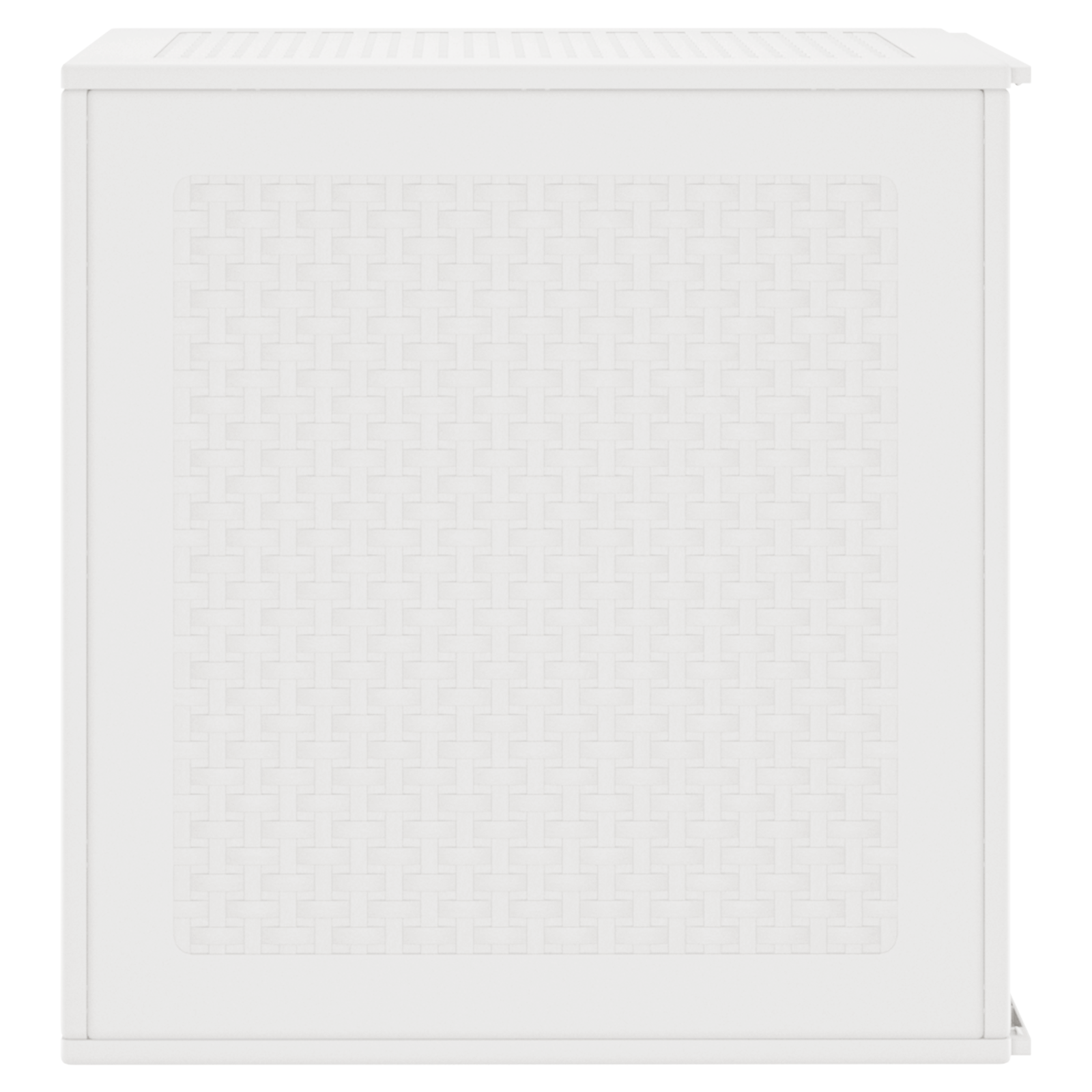 Denne smarte udendørs opbevaringsboks i hvid er den perfekte løsning til at holde din have, terrasse eller altan velorganiseret. Med sine kompakte dimensioner på 55x53x57 cm passer den ideelt til mindre udendørsområder, hvor plads er værdifuld.
