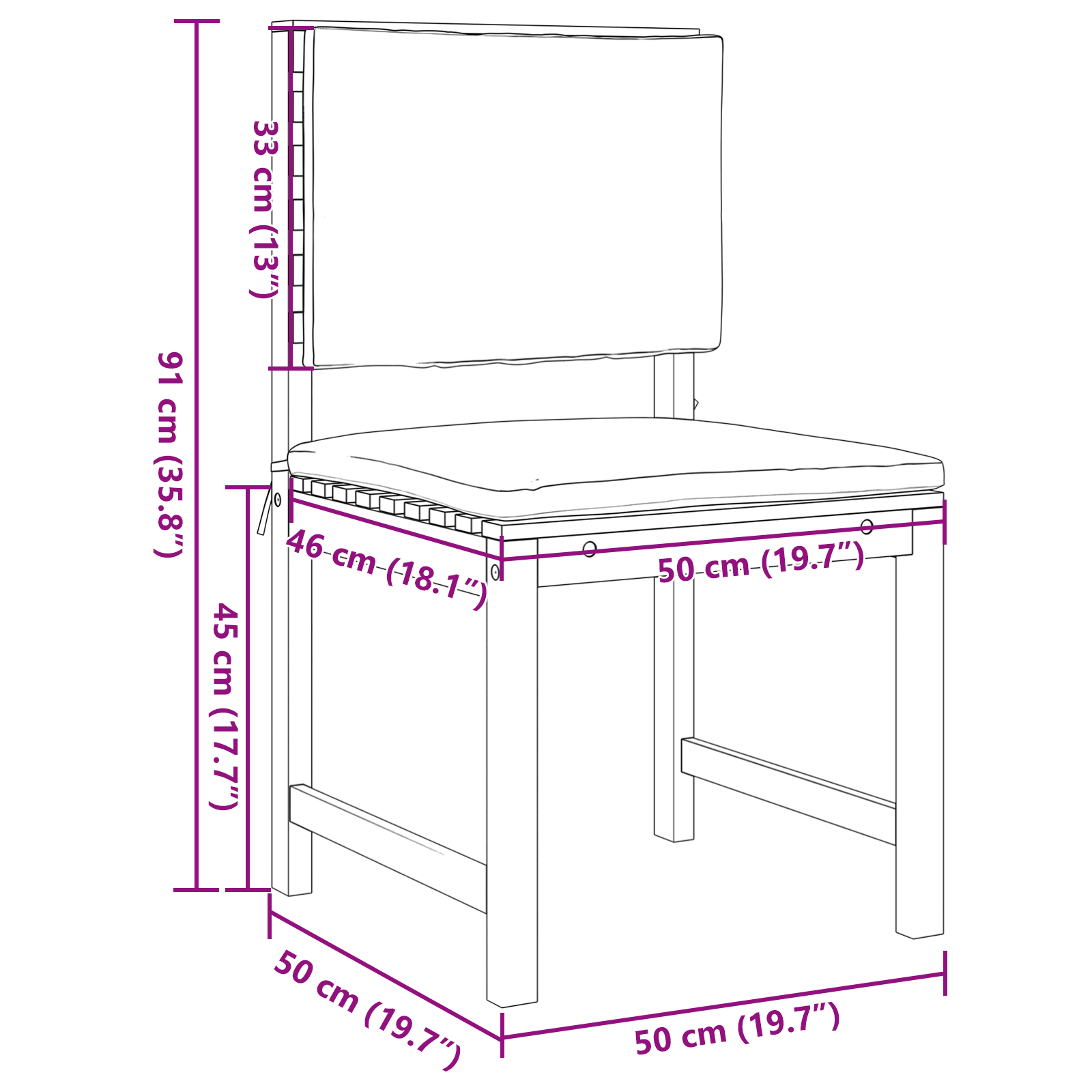 Armløs Havestol 2 Dele Brun 50 X 50 X 91Cm Massivt Akacietræ