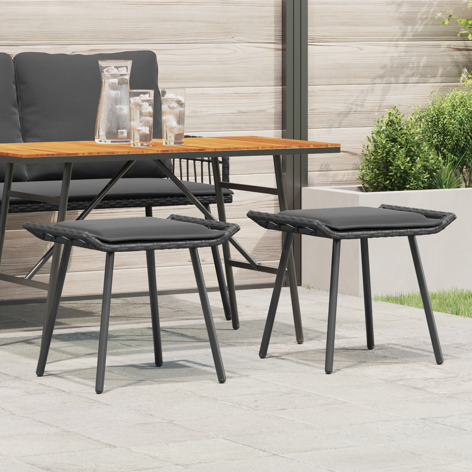 - Levering indeholder: 2 x PE rattan skamler med buede kanter