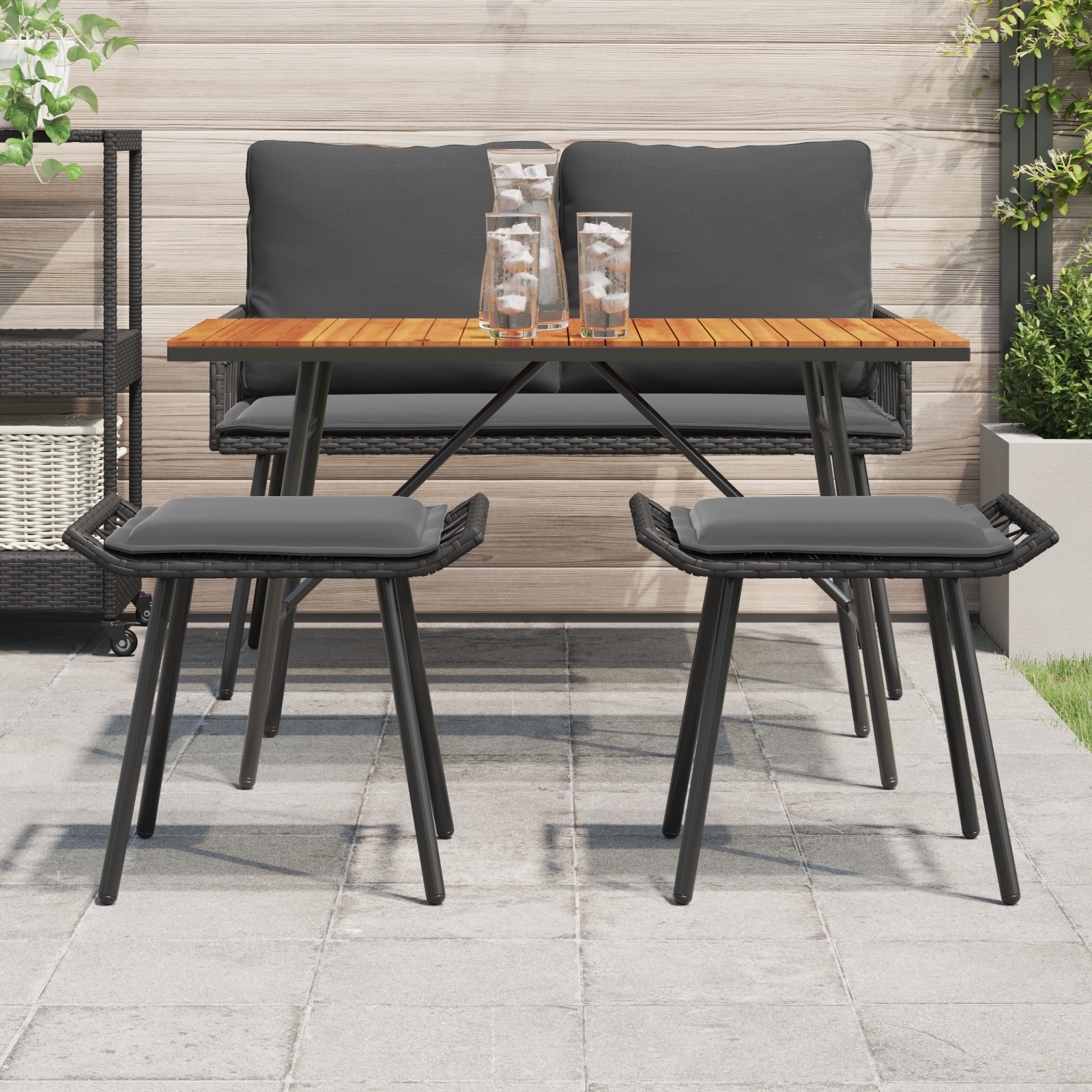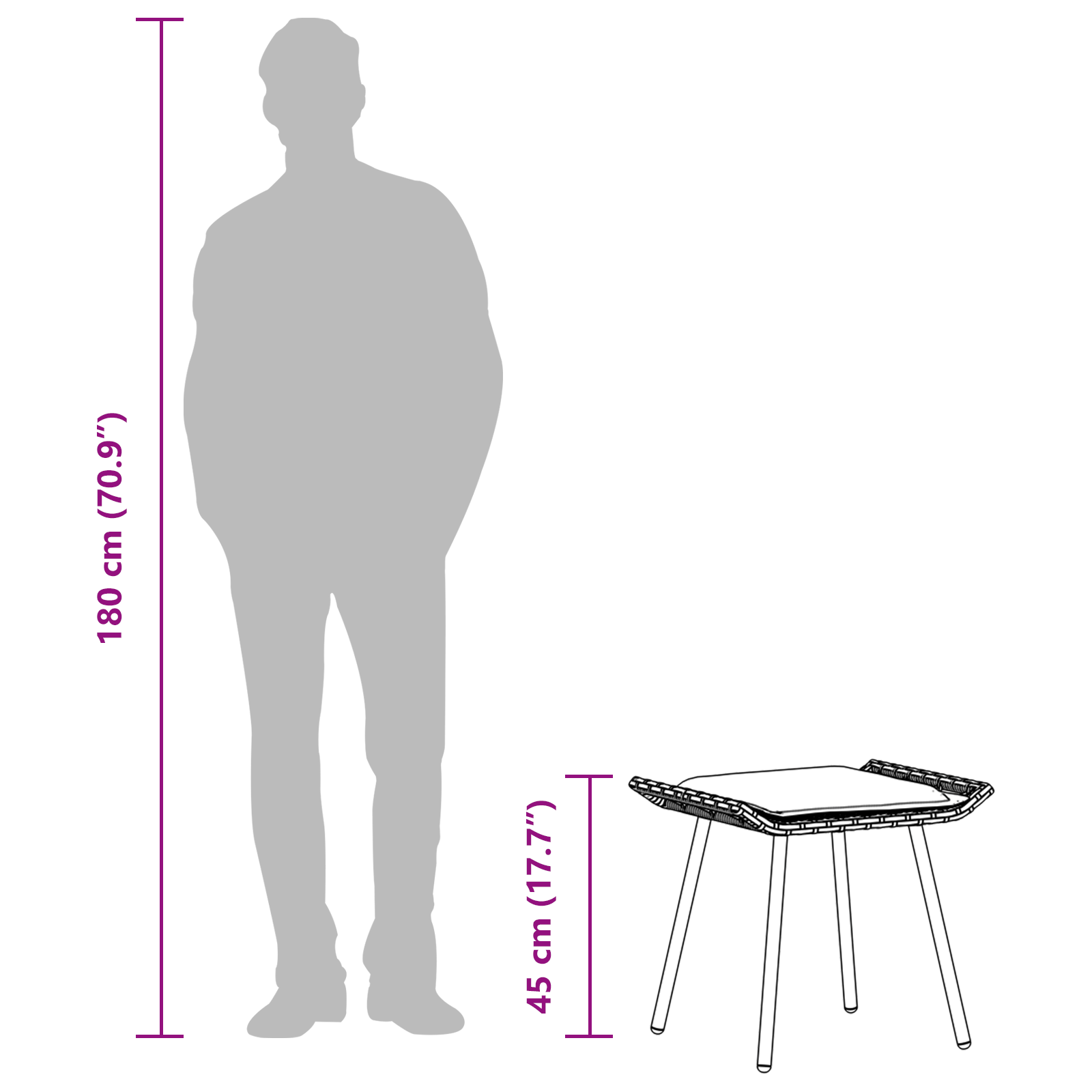 - Materiale: Syntetisk poly rattan og pulverlakeret stål