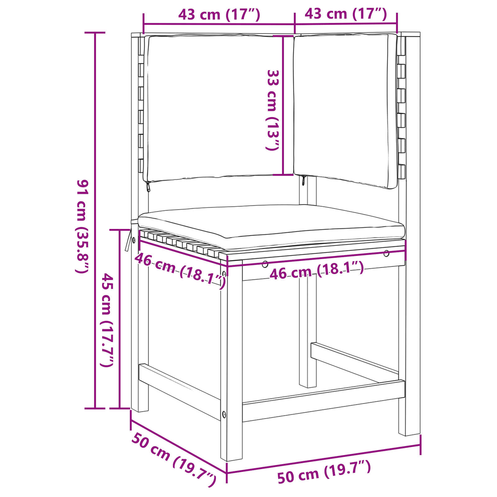 - Hynder: Inkluderet med aftagelige betræk med lynlås