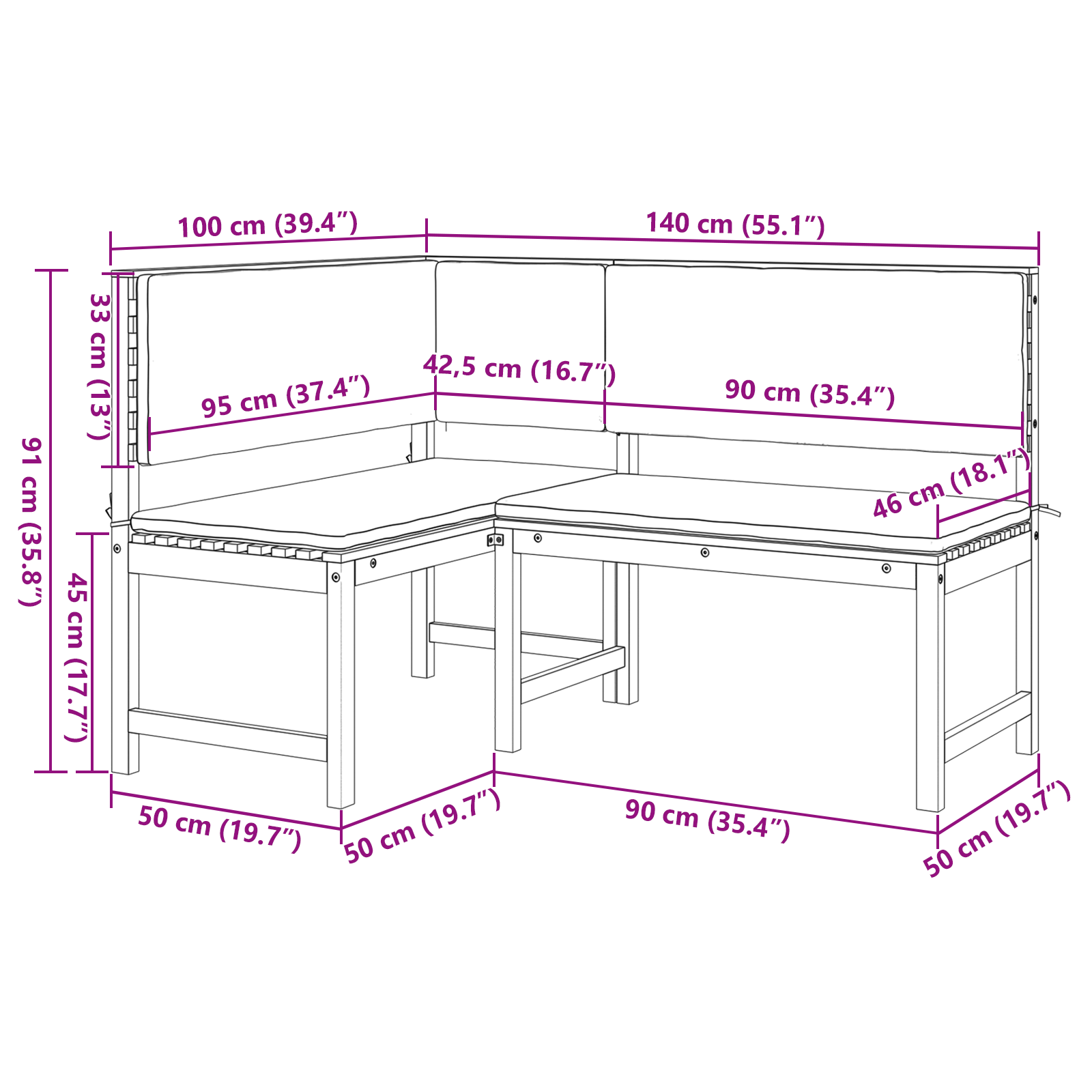 - Materiale: Solid akacietræ med antracitgrå puder