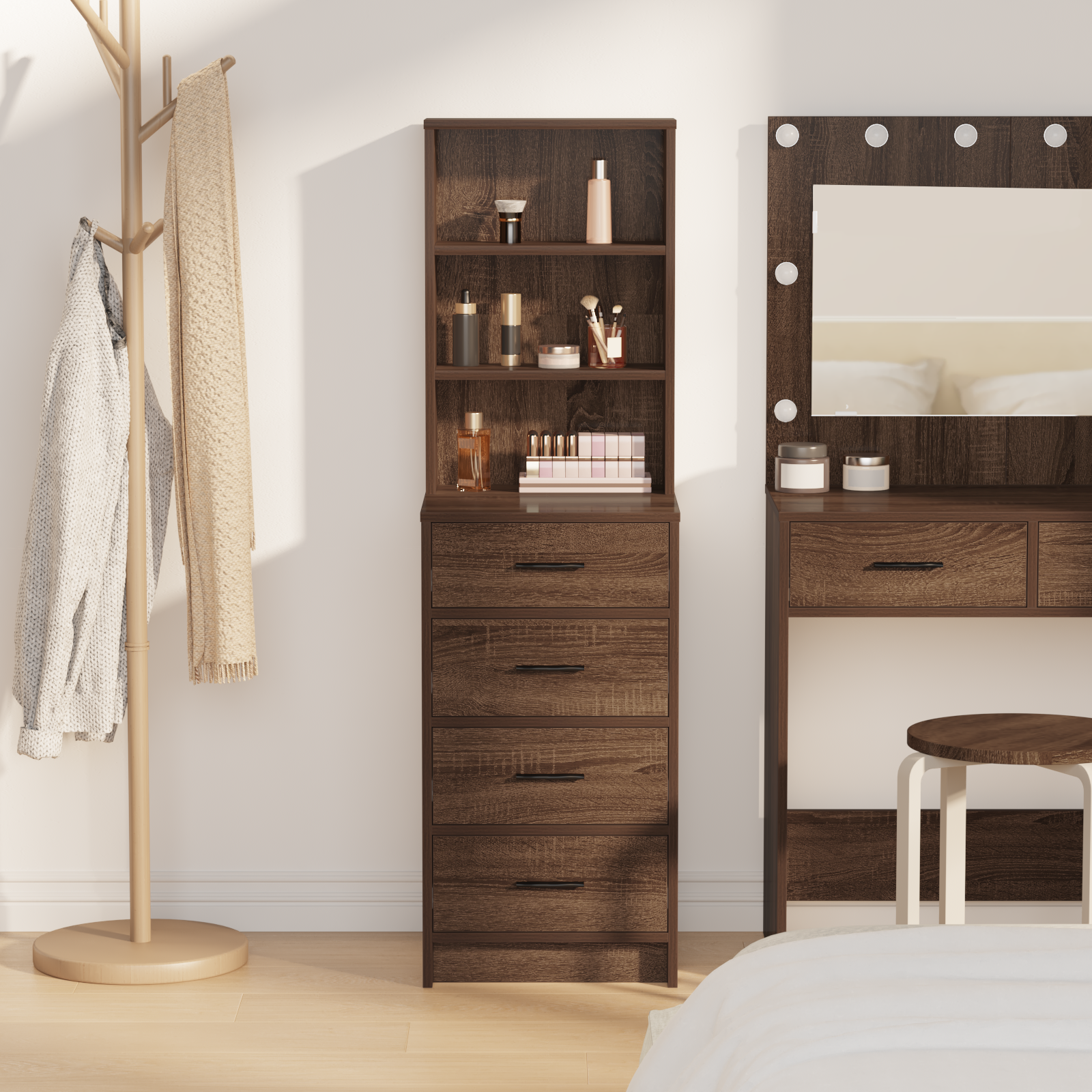 Highboard Med Skuffe Brun Eg 40 X 41 X 135 Cm Konstrueret Træ