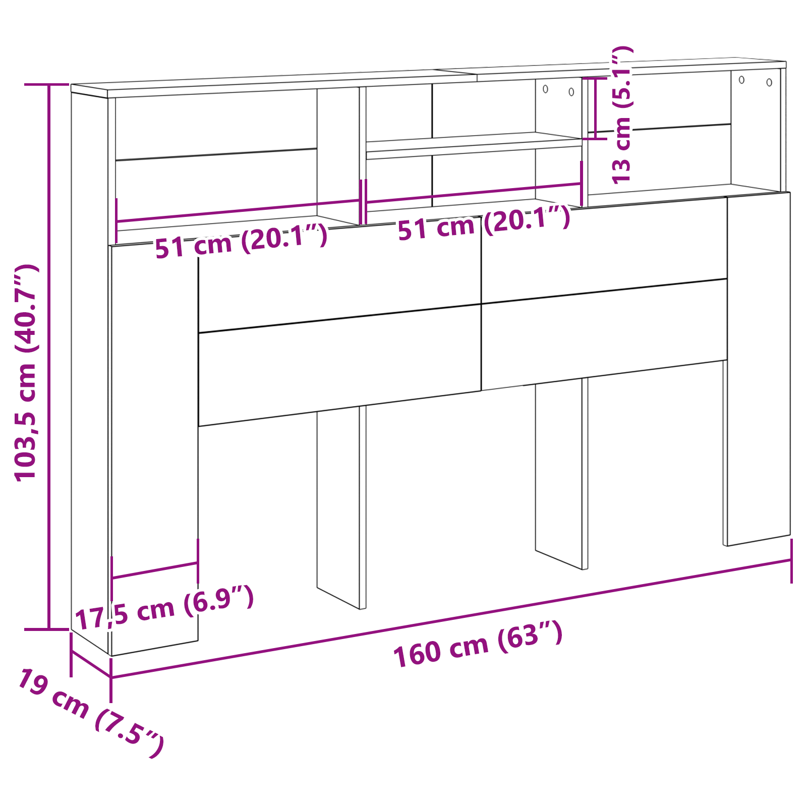 Med målene 160 x 19 x 103,5 cm passer dette sengegavl skab perfekt bag de fleste dobbeltsenge og fungerer som en elegant baggrund for dit sovemiljø. Den slanke dybde på kun 19 cm betyder, at skabet ikke optager unødig gulvplads, mens højden på 103,5 cm skaber en markant og stilfuld væg bag sengen.