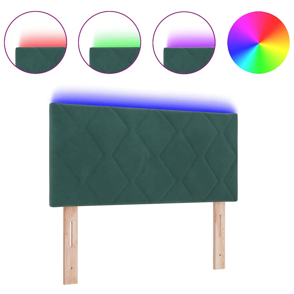 Led-sengegavl Med Led -strimmellys Mørkegrøn 90 Cm Fløjl